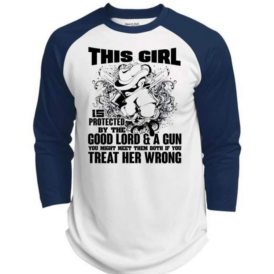 Protected By The Good Lord And A Gun T Shirt, I Love Gunning T Shirt, Awesome T-Shirts (Polyester Game Baseball Jersey)