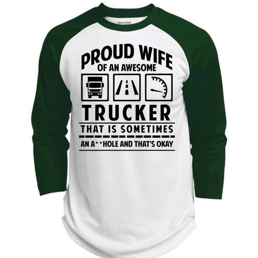 Proud Wife Of An Awesome Trucker T Shirt, I Love Trucker T Shirt, Awesome T-Shirts (Polyester Game Baseball Jersey)