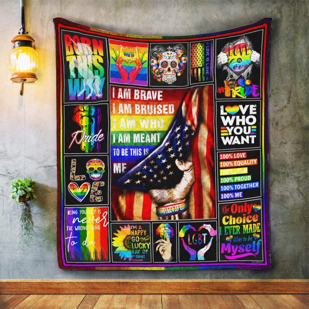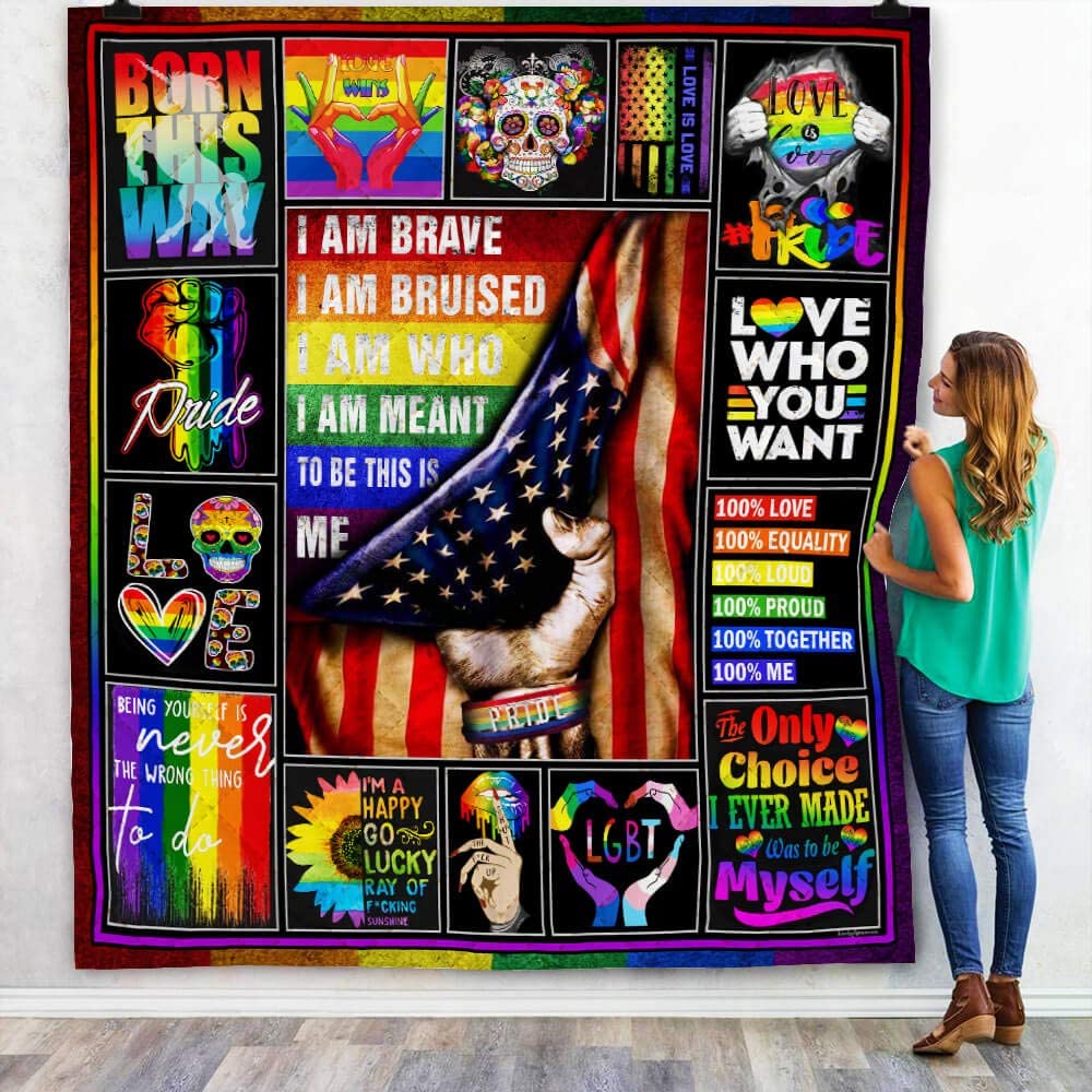 Quilt Bedding Printed Lgbt Pride. I Am Brave Quilt Blanket For Gay Man, Couple Gaymer Gift