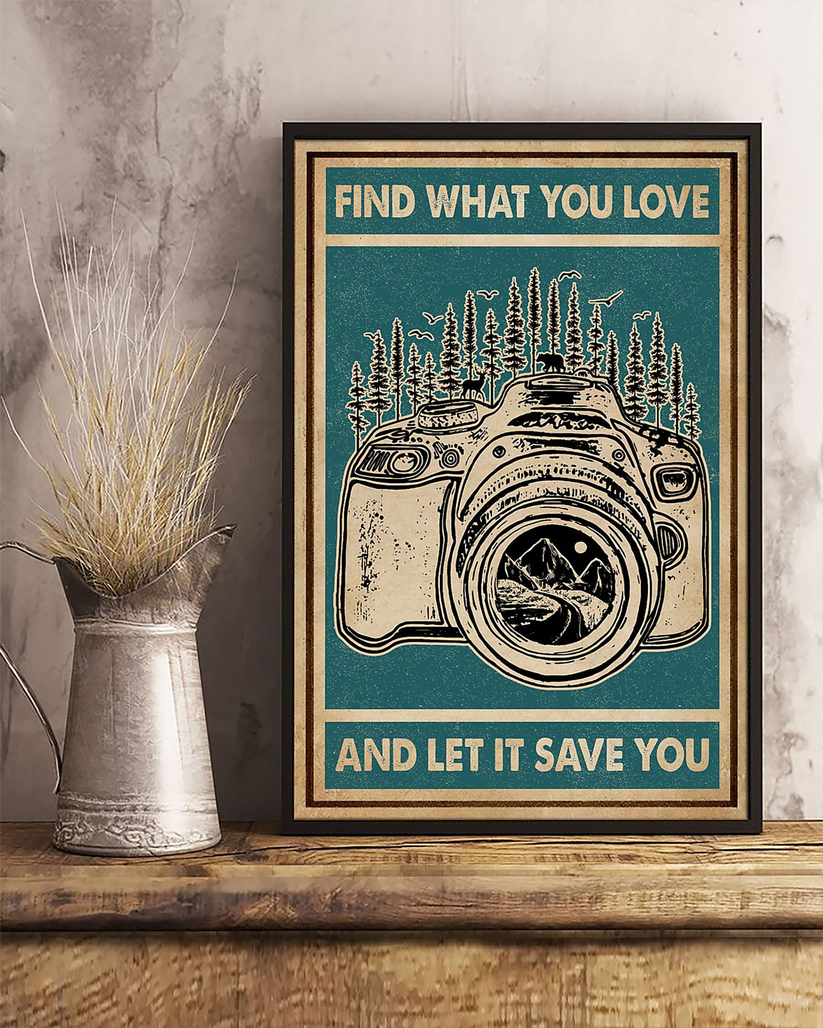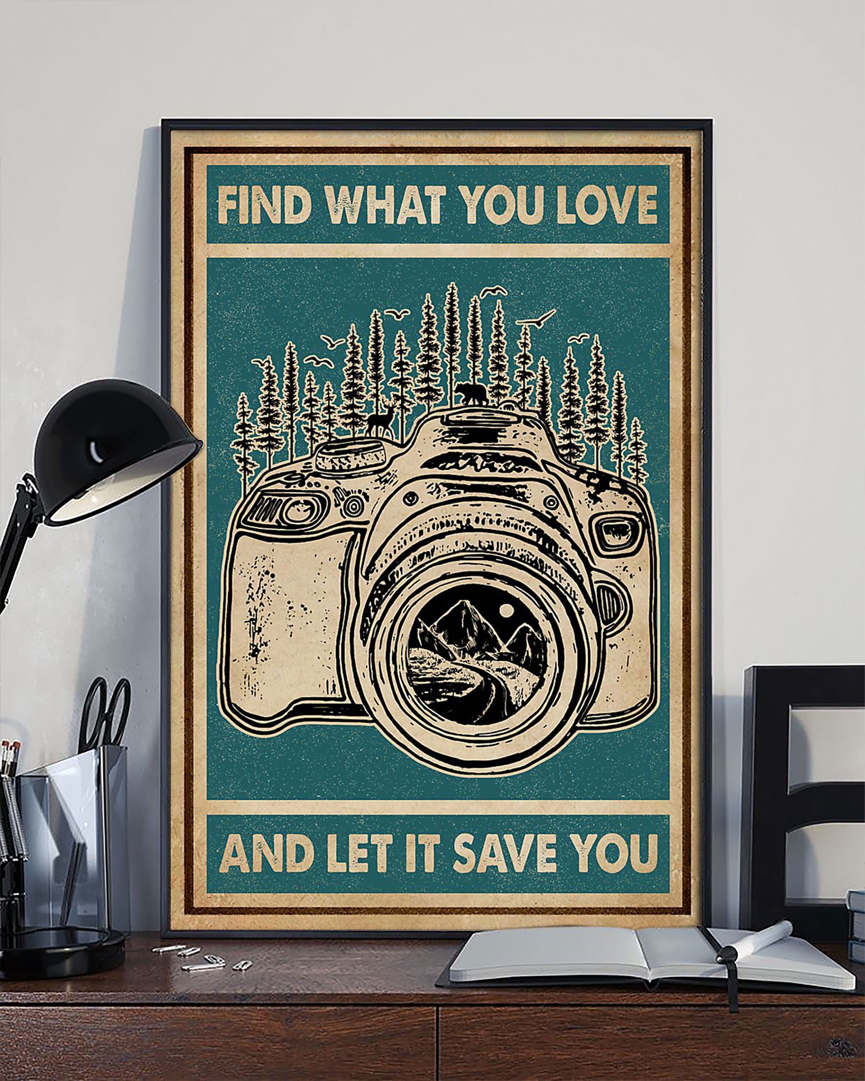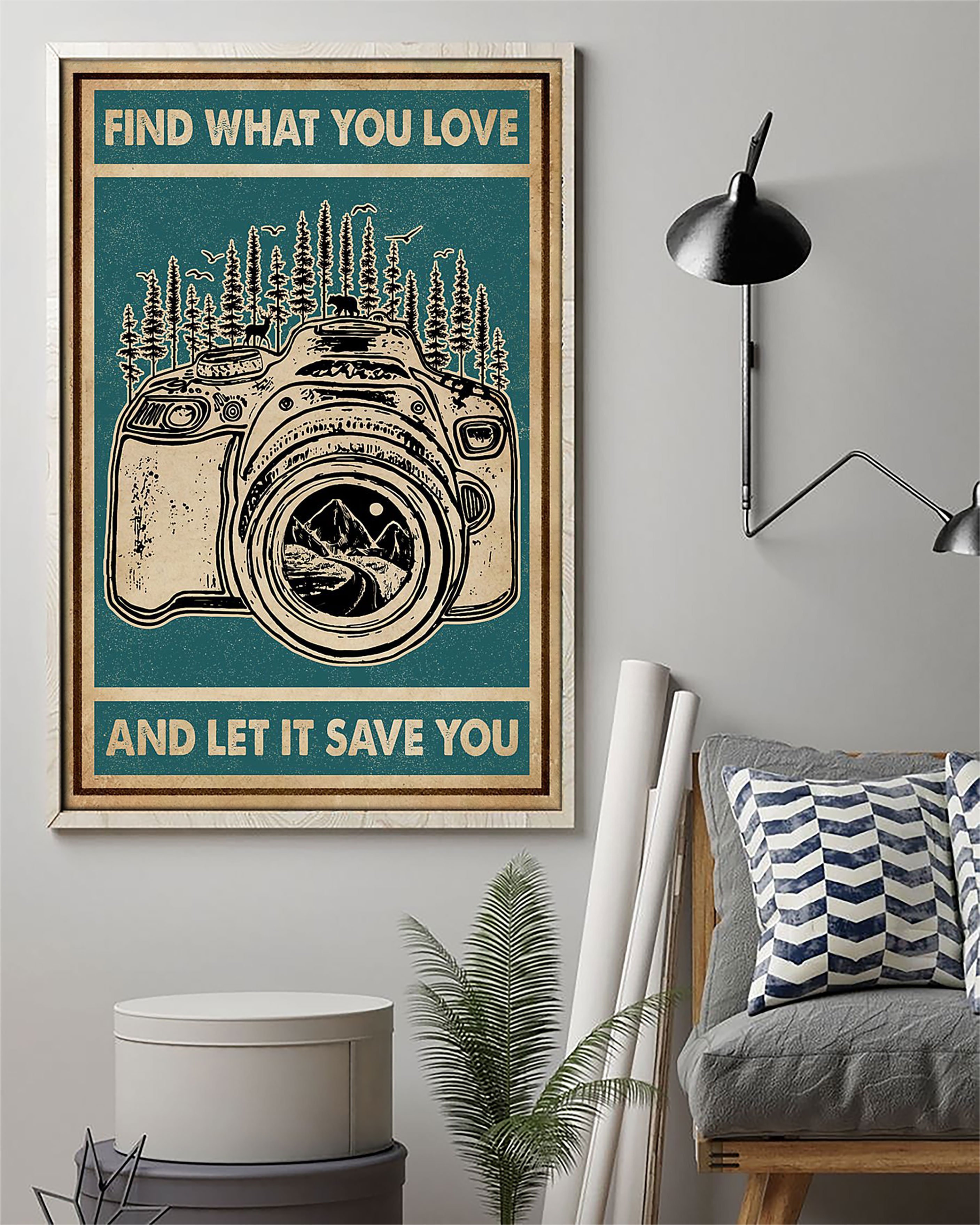 So whether you're looking to show off your own name or create a personalized gift for someone special, LateAndLow Store has got you covered. Start designing your own custom Retro Green Find What You Love Camera Vertical Paper Poster No Frame Matte Canvas Wall Decor print-on-demand product today, and let us bring your vision to life!