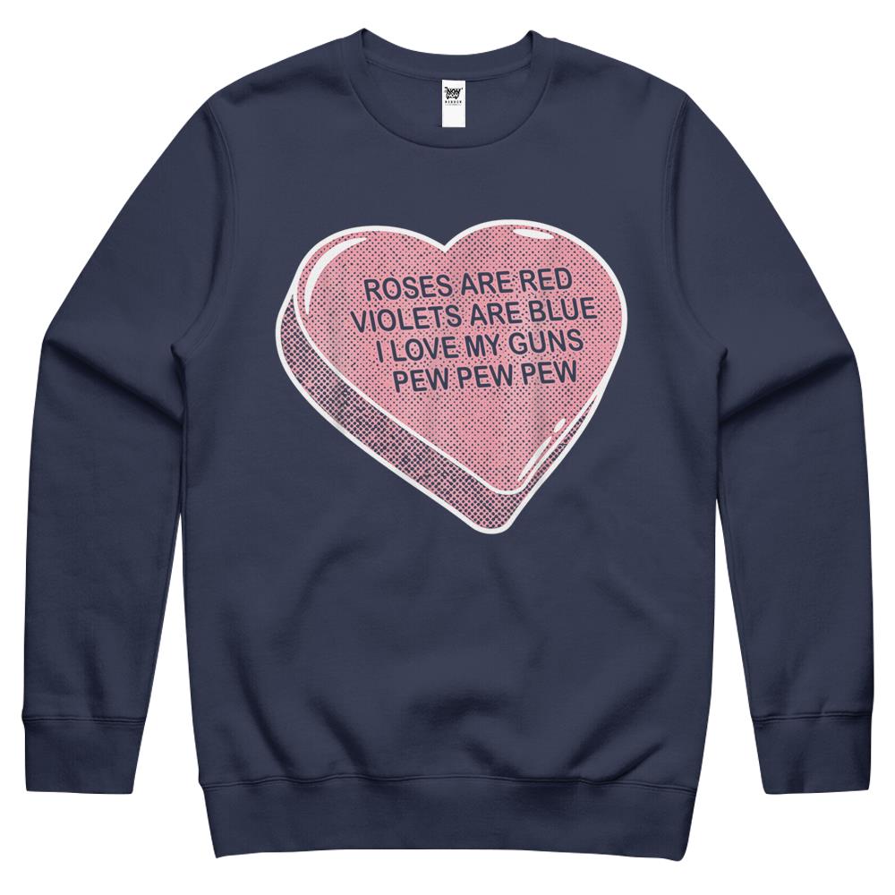Rose Are Red Violet’S Are Blue I Love My Gun Pew Pew Heart Crewneck Sweatshirt