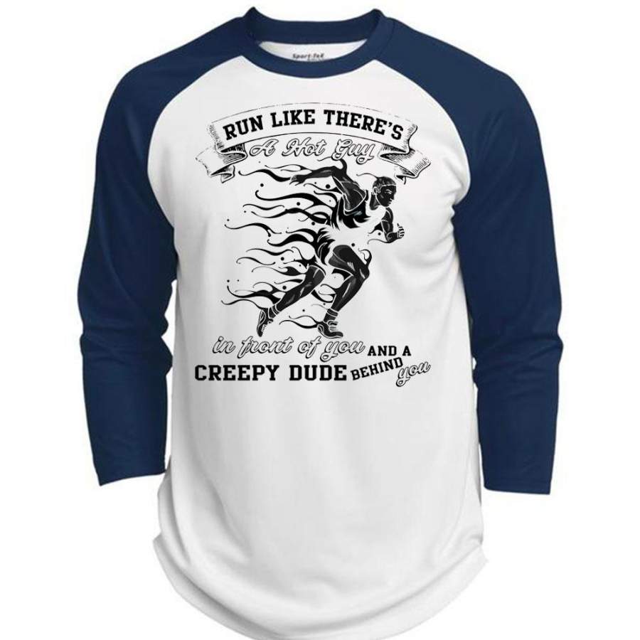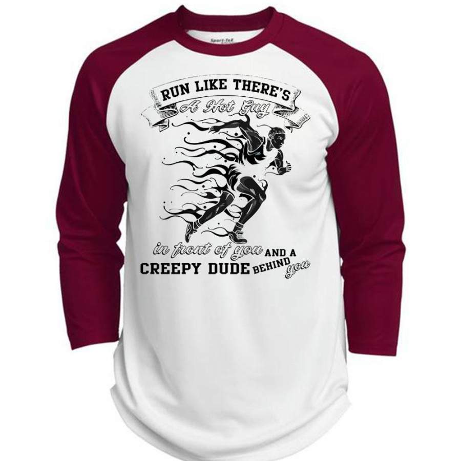 Run Like There’s A Hot Guy T Shirt, I Love Runner T Shirt, Awesome T-Shirts (Polyester Game Baseball Jersey)