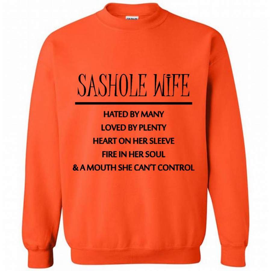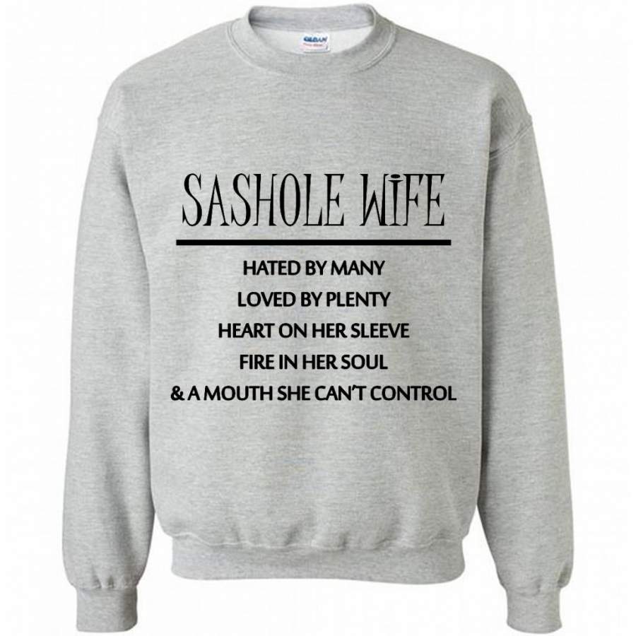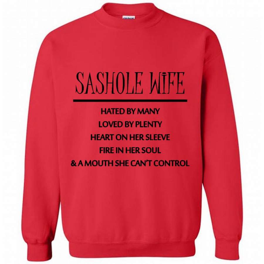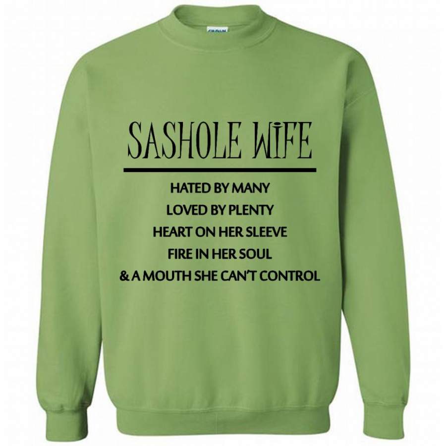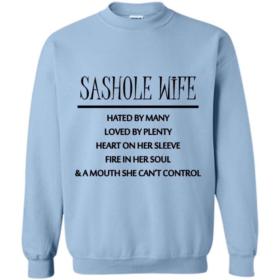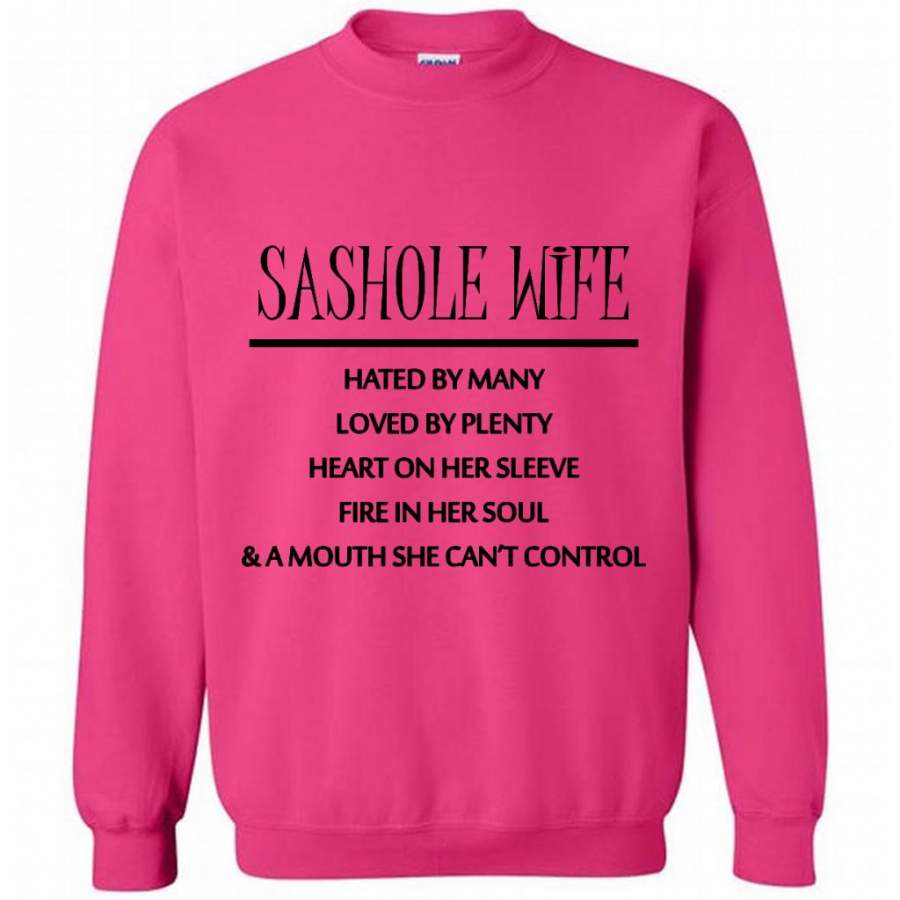 Sasshole Wife Hated By Many Loved By Plenty Heart On Her Sleeve Fire In Her Soul And A Mouth She Can’t Control (w) – Gildan Crewneck Sweatshirt