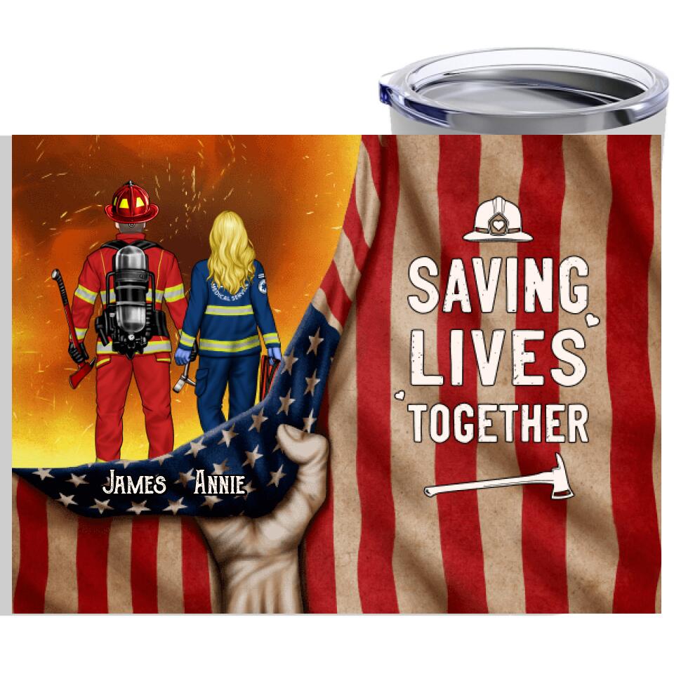 Saving Lives Couple Friends – Personalized Tumbler Firefighter, Ems, Nurse, Police Officer, Military