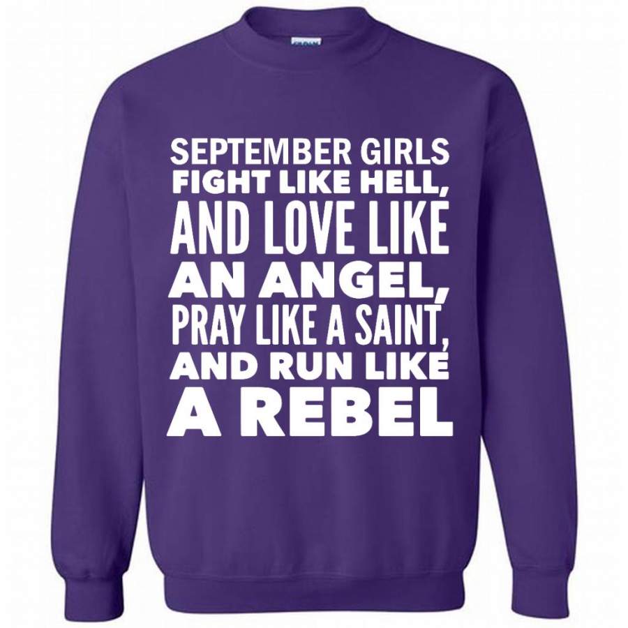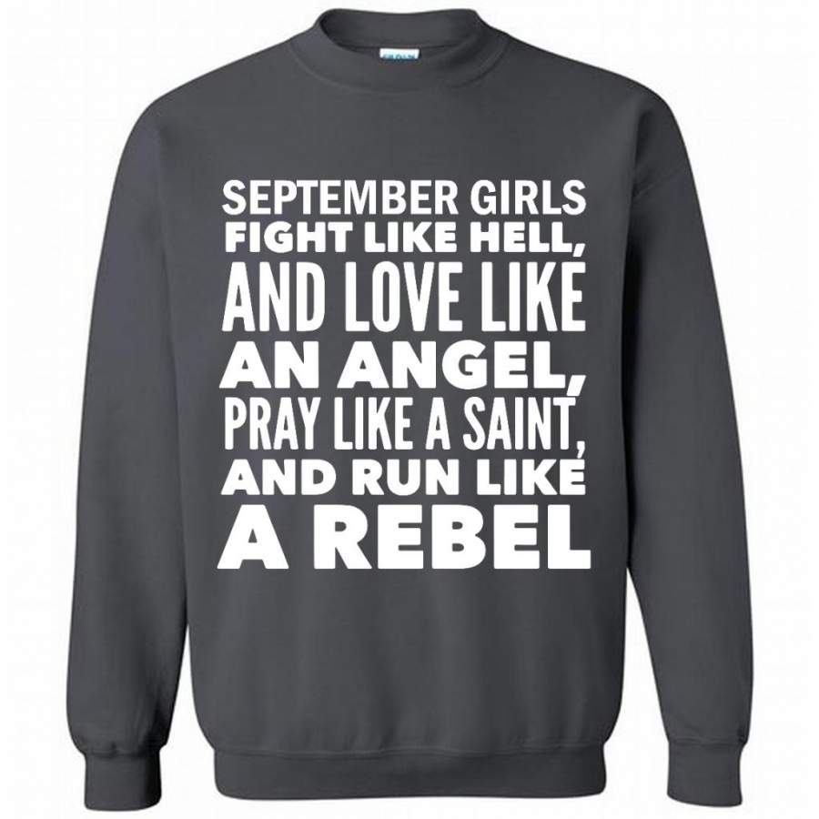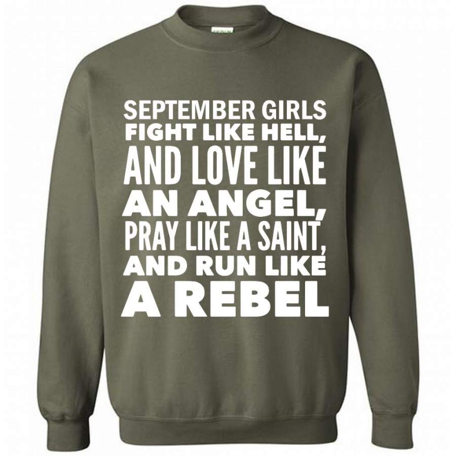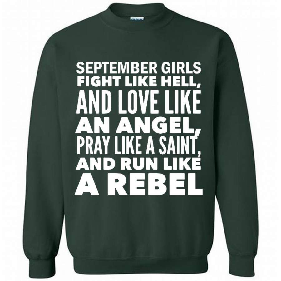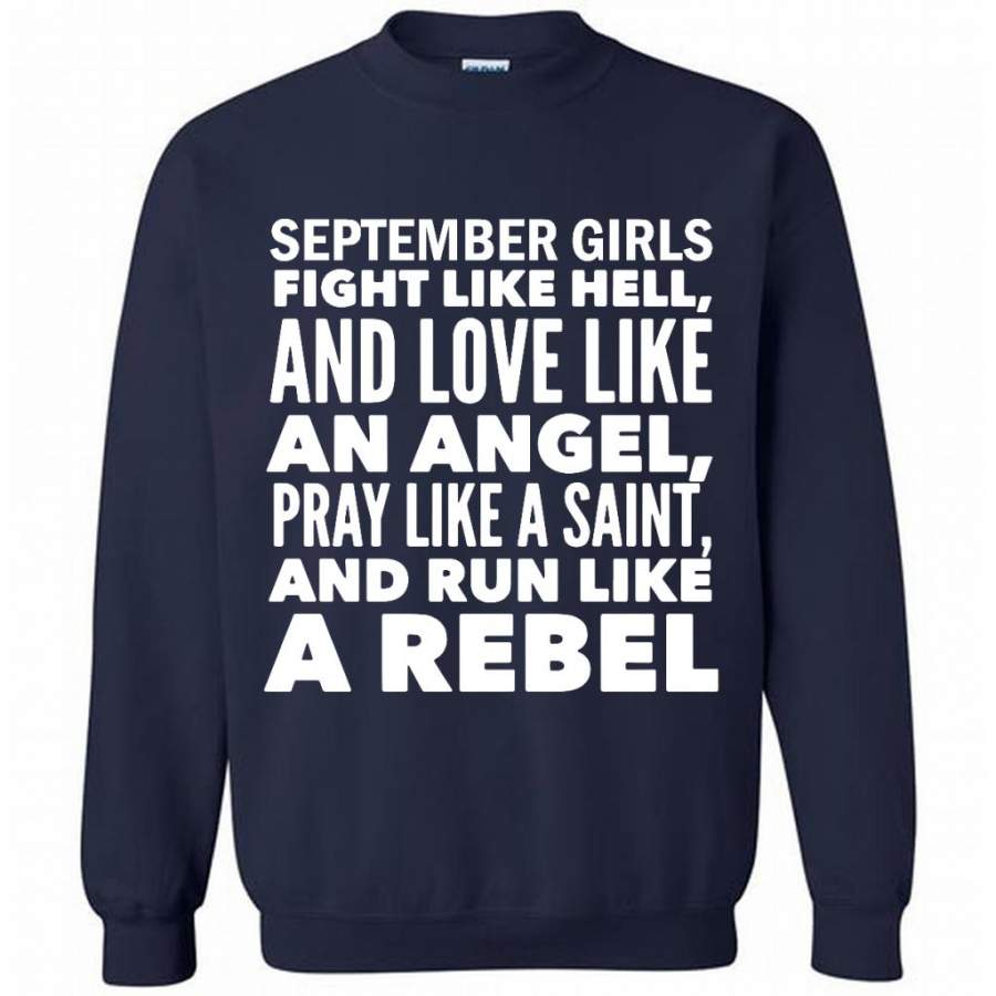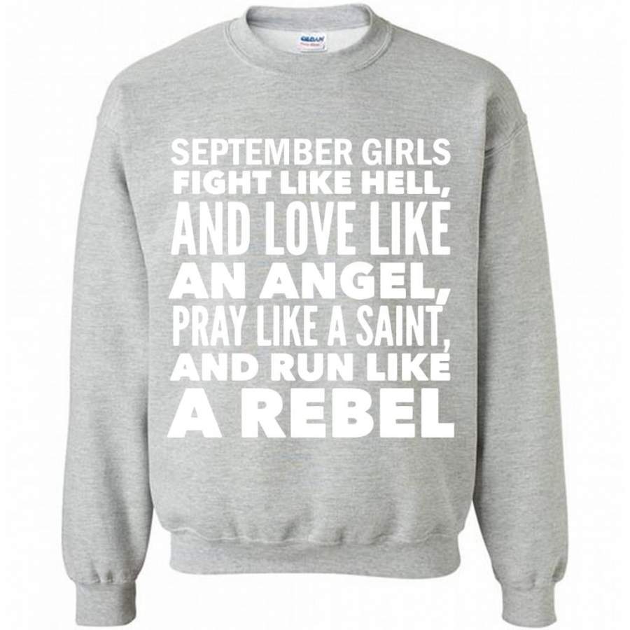 September Girls Fight Like Hell And Love Like An Angel Pray Like A Saint And Run Like A Rebel – Gildan Crewneck Sweatshirt