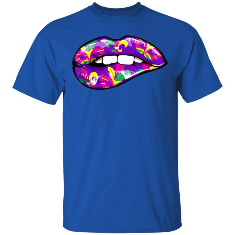 Sexy Mardi Gras Purple Lips Love Mardi Gras Party T Shirt Costume Mask T-Shirt Fat Tuesday Tshirt Carnival Festival Tee Friends Shirts