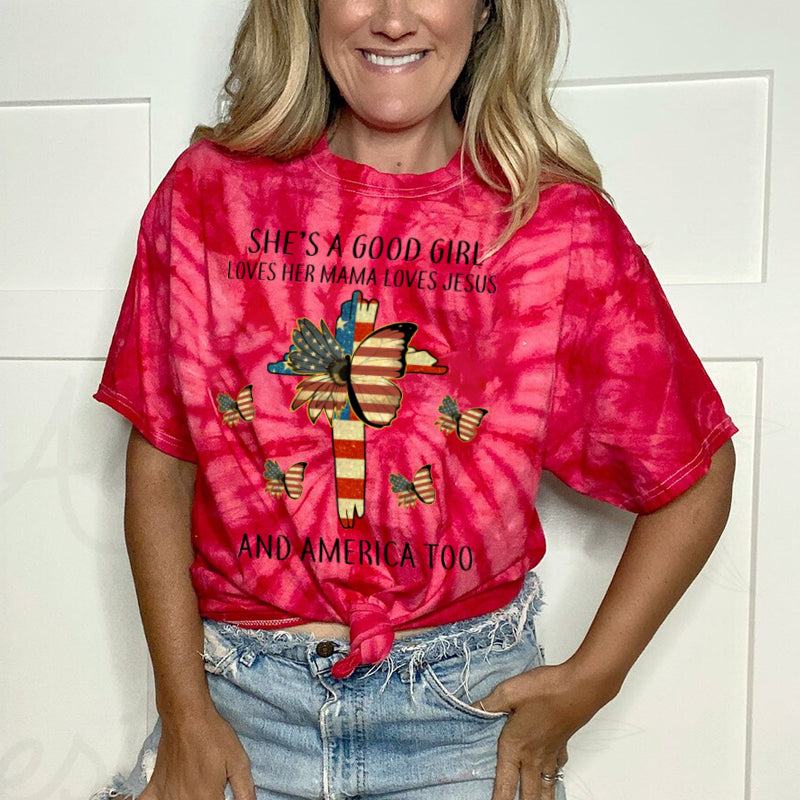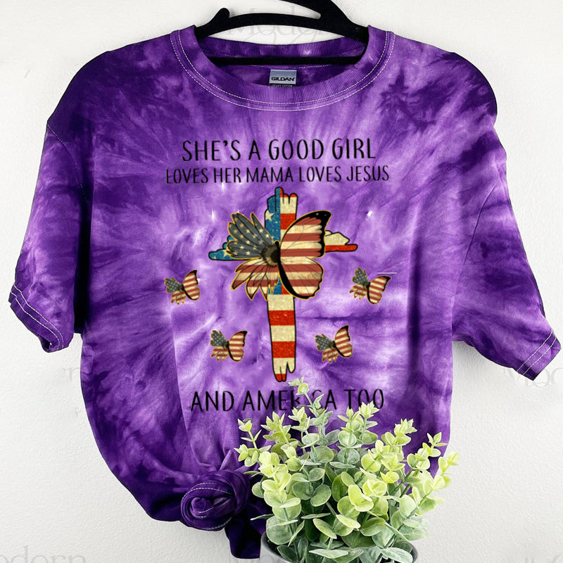 She Is A Good Girl Loves Her Mama And America Too Tie Dye T-Shirt