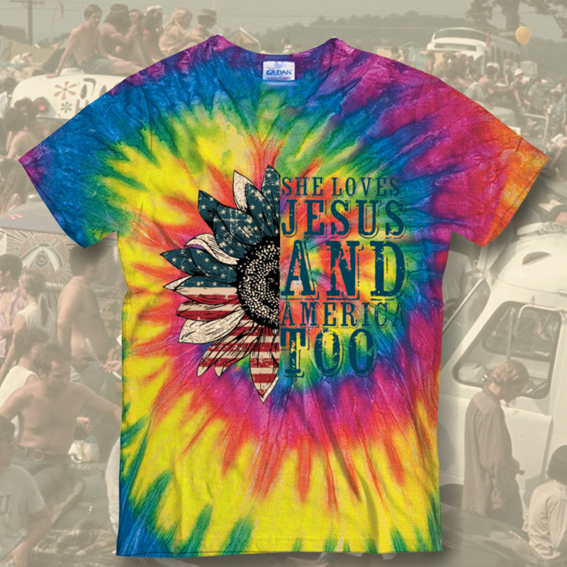 She Love Jesus And America Tie Dye T-Shirt