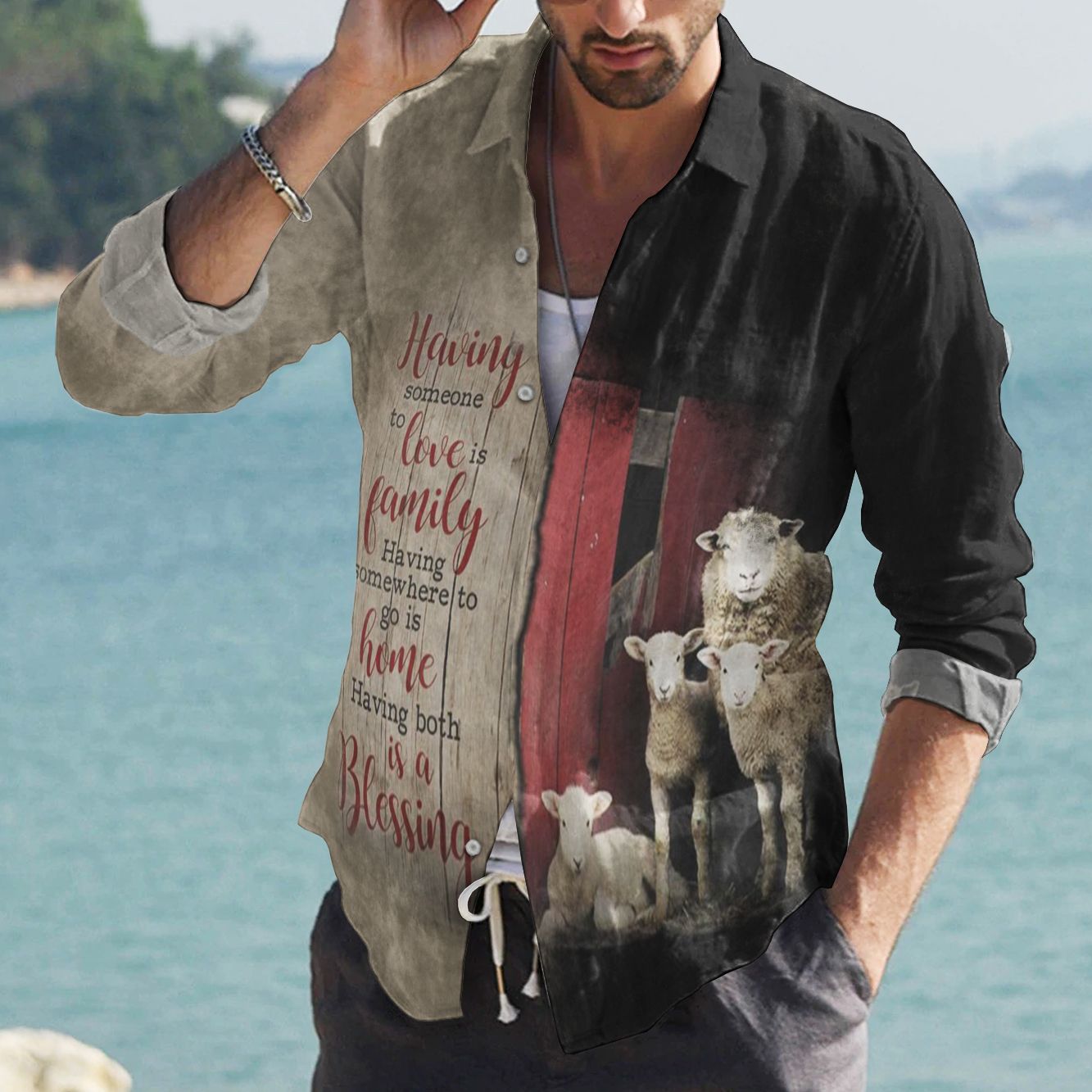So whether you're looking to show off your own name or create a personalized gift for someone special, LateAndLow Store has got you covered. Start designing your own custom Sheep Cotton And Linen Casual Shirt, Love Faith Cotton And Linen Casual Shirt print-on-demand product today, and let us bring your vision to life!