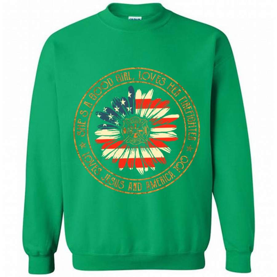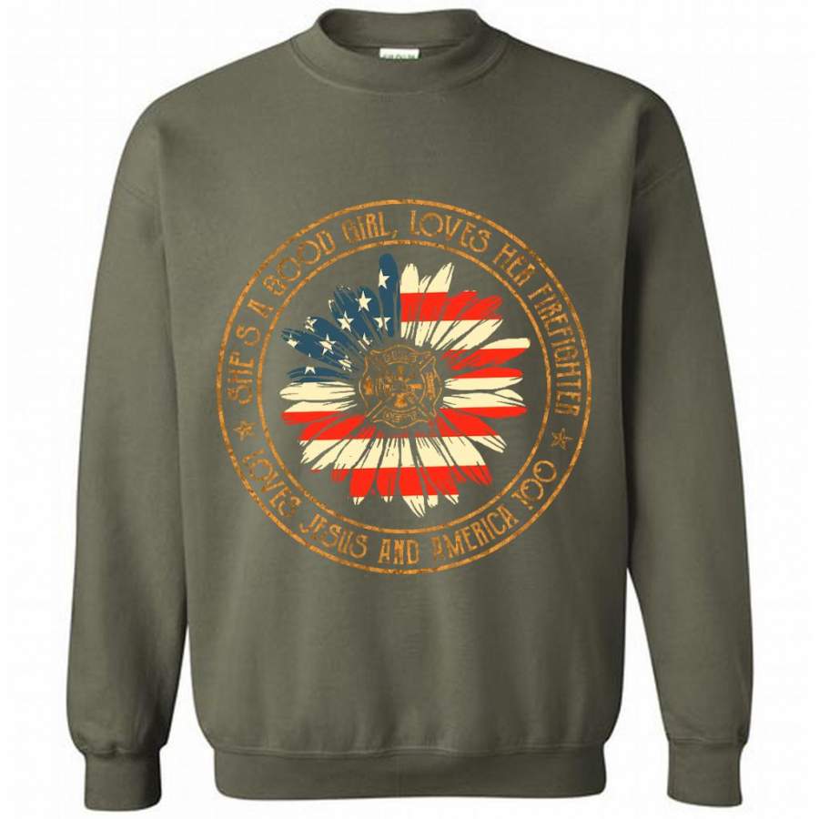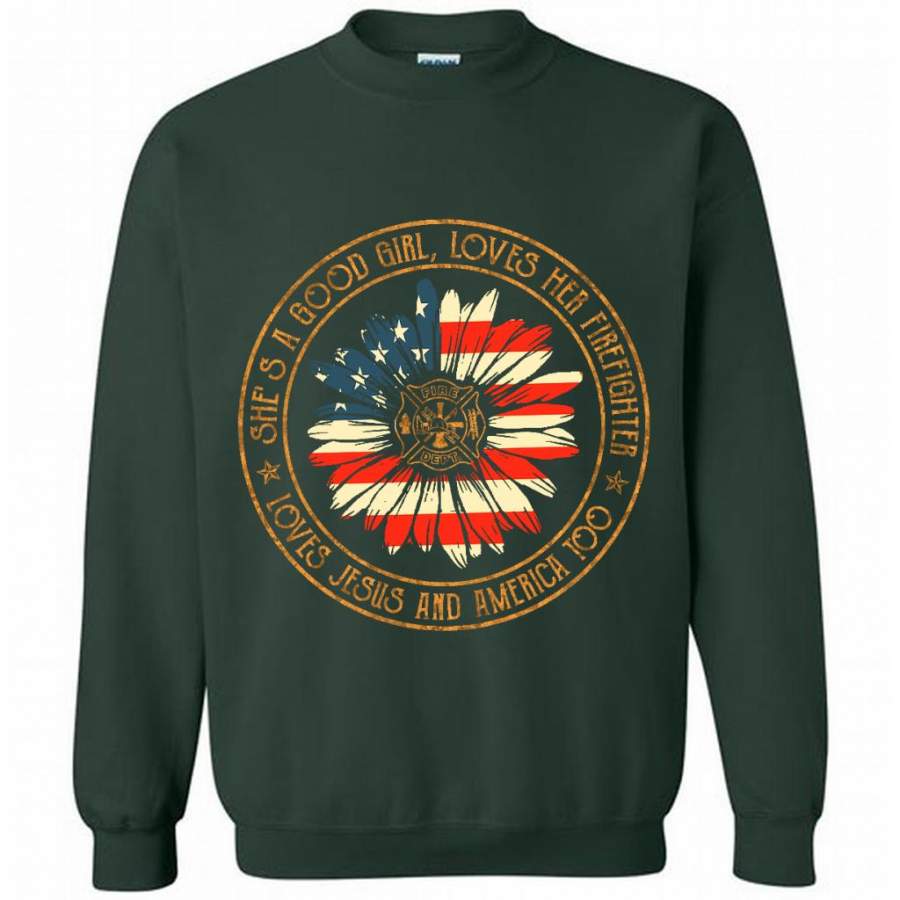 She’s A Good Girl Loves Her Firefighter Loves Jesus And America Too, Circle Vintage Classic Retro – Gildan Crewneck Sweatshirt