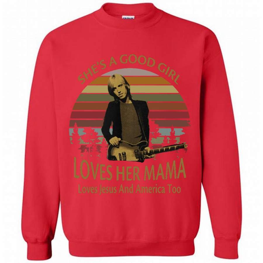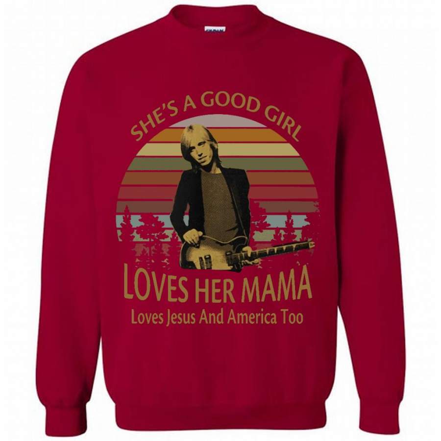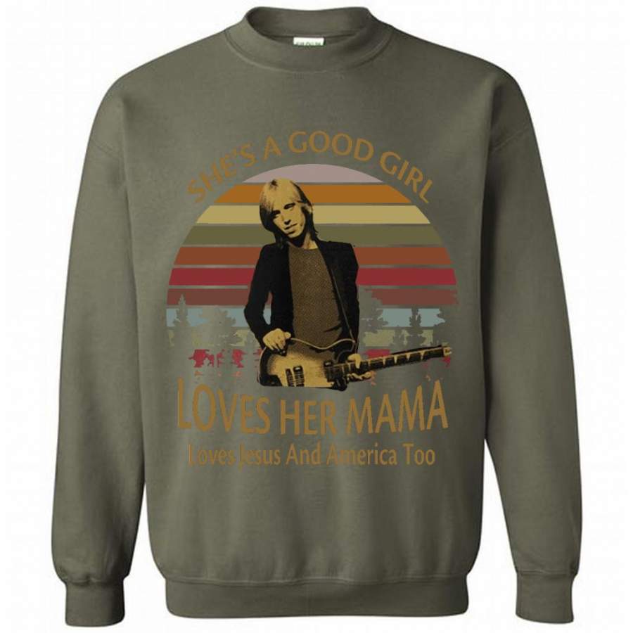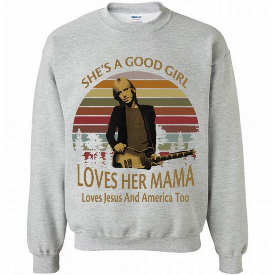 She’s A Good Girl Loves Her Mama Loves Jesus And America Too Classic Vintage Retro Design – Gildan Crewneck Sweatshirt