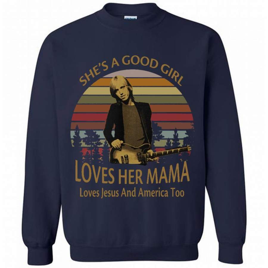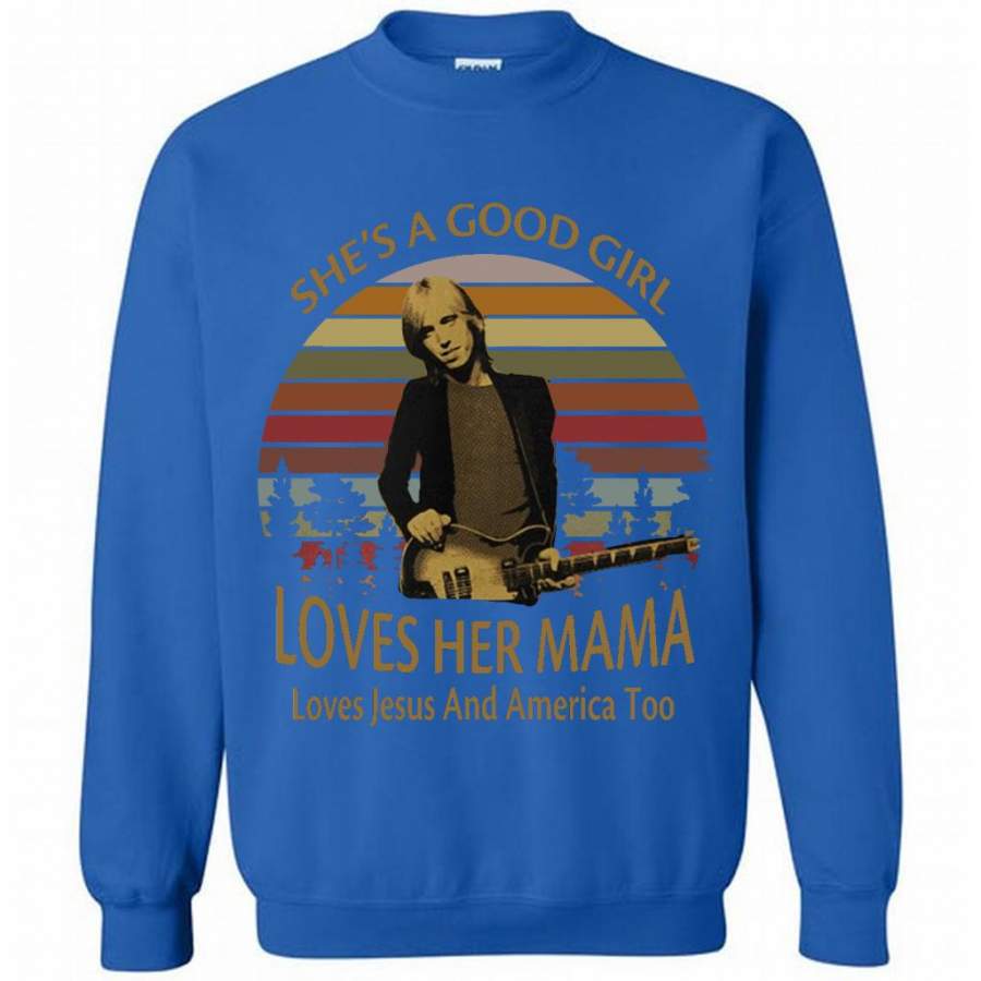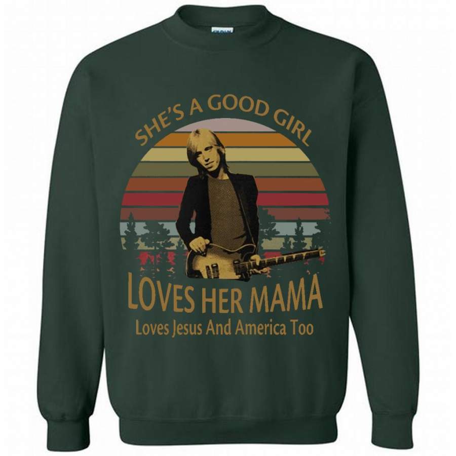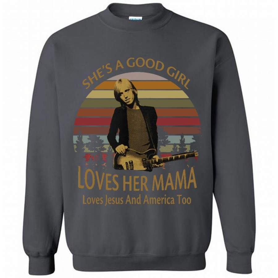 She’s A Good Girl Loves Her Mama Loves Jesus And America Too Classic Vintage Retro Design – Gildan Crewneck Sweatshirt