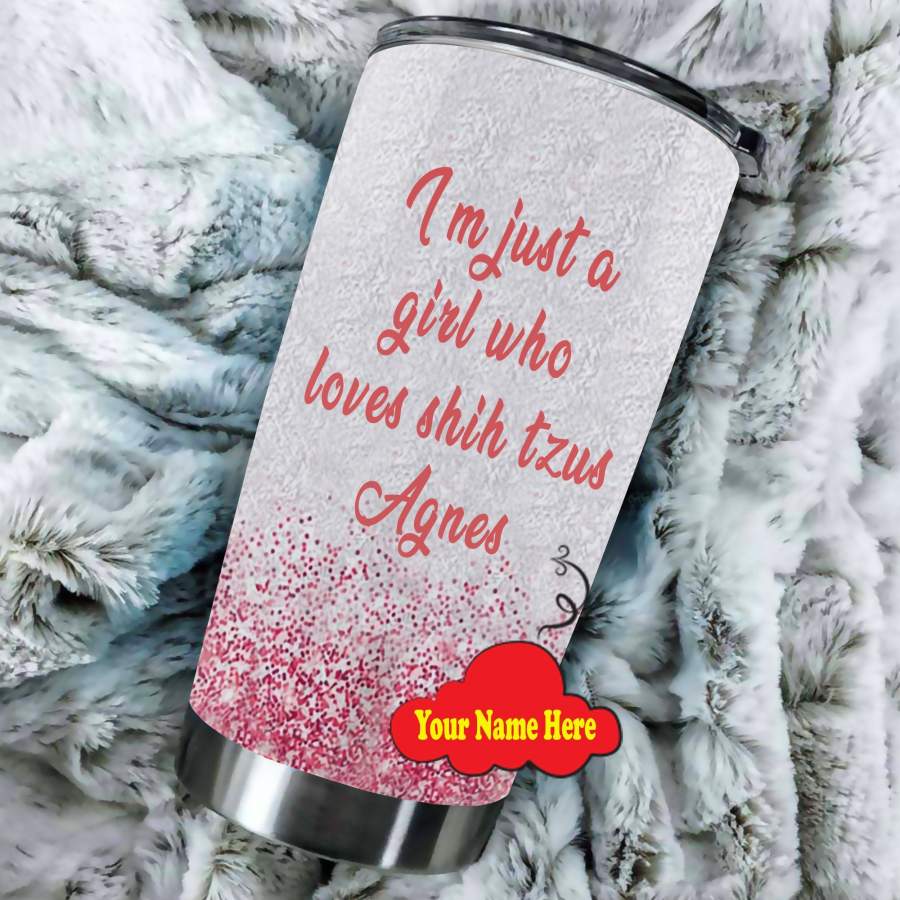 Shih Tzu I’M Just A Girl Who Loves Shih Tzus Personalized Name Stainless Steel Insulated Tumbler Cups