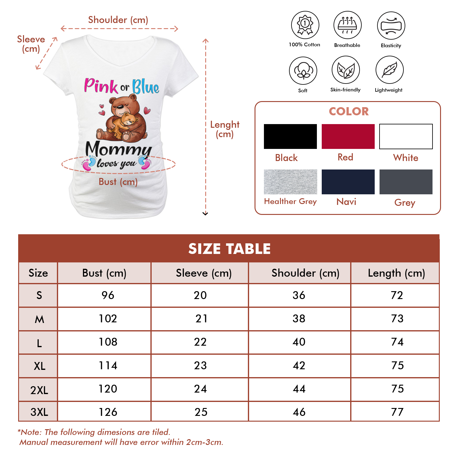 At Cotenis Store, we offer a fantastic range of print-on-demand products that can be personalized with your name. Our Short Sleeve Maternity Tops Shirts Custom Mama Baby Bear Pink Or Blue Mommy Loves You Pregnancy Clothes print-on-demand products are the perfect way to add a personal touch to your wardrobe or to create a unique and thoughtful gift for someone special.
