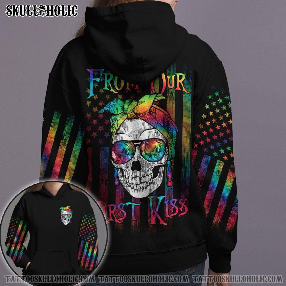 So whether you're looking to show off your own name or create a personalized gift for someone special, LateAndLow Store has got you covered. Start designing your own custom Skull Couple From Our First Kiss Till Our Last Breath Tie Dye Hoodie 3D #Hd print-on-demand product today, and let us bring your vision to life!