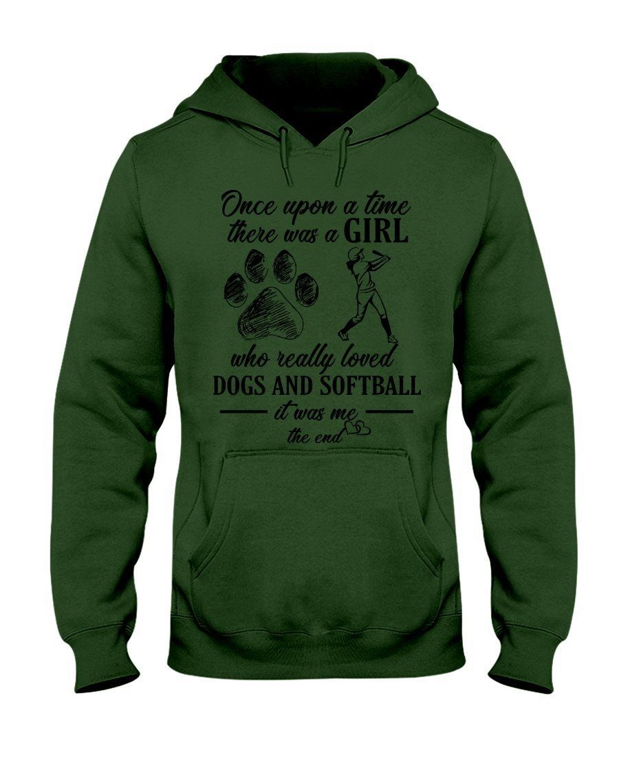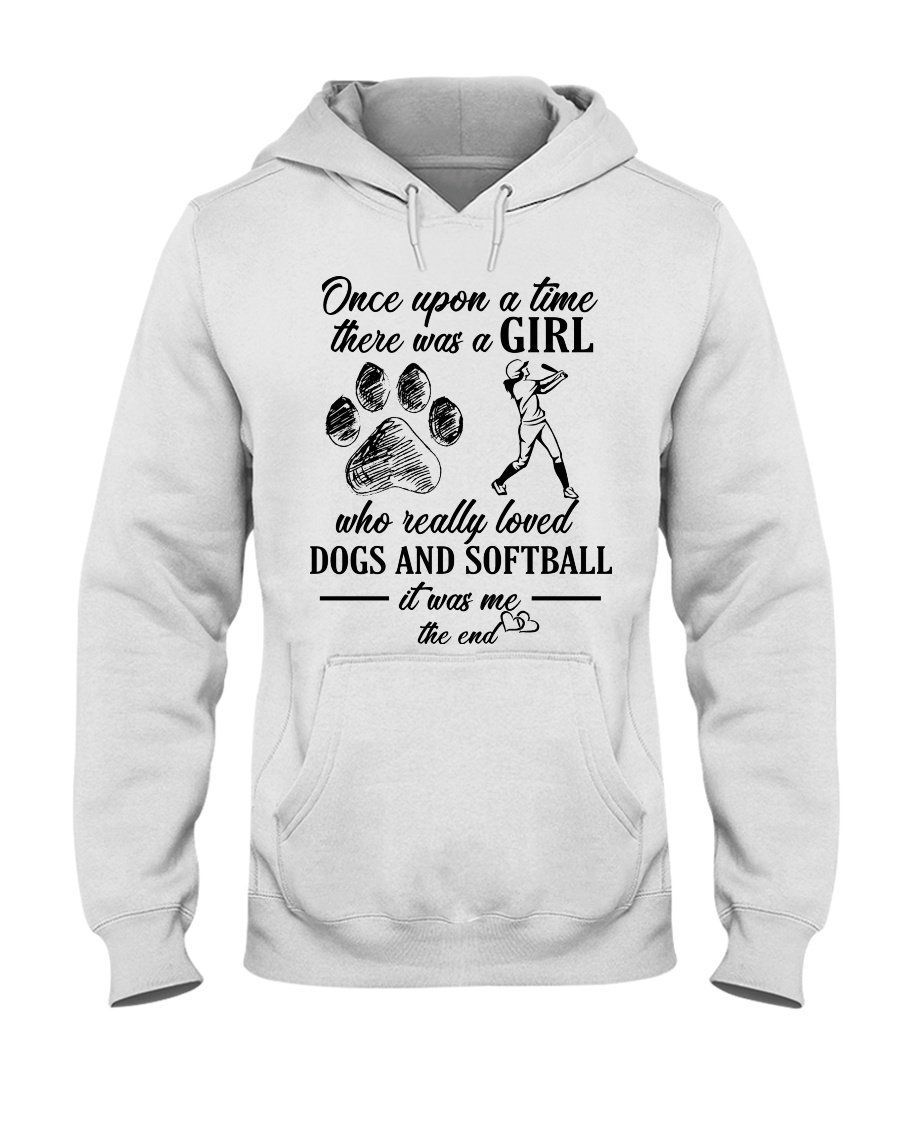 Softball Once Upon Girl Who Really Loved Dogs And Softball Hoodie