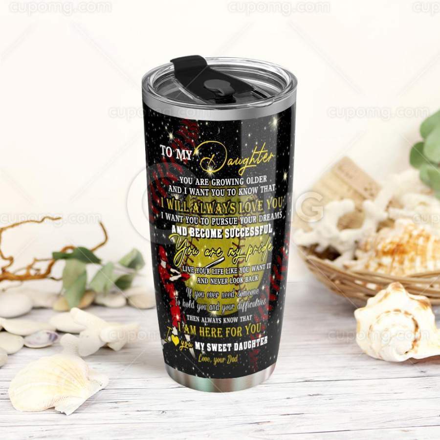 Softball. To My Daughter, Love Dad Stainless Steel Insulated Tumbler Cup Thn1802T 17oz/20oz/30oz