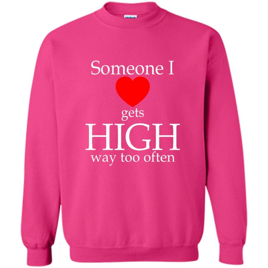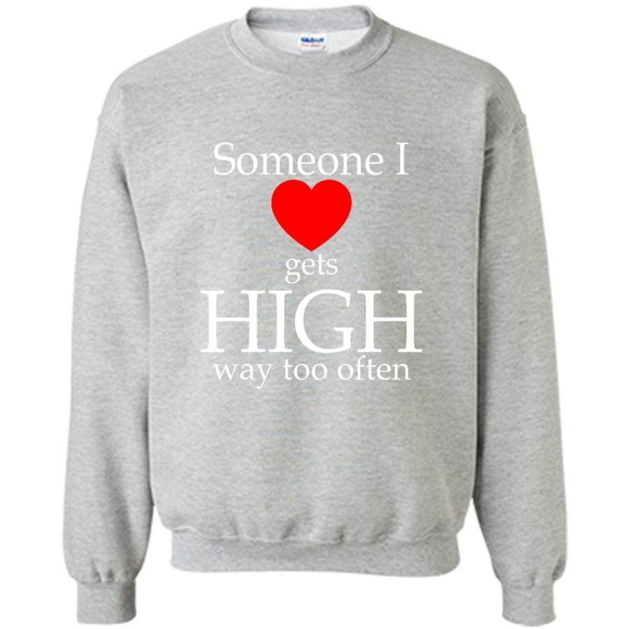 Someone I Love Gets HIGH Way Too Often – Gildan Crewneck Sweatshirt