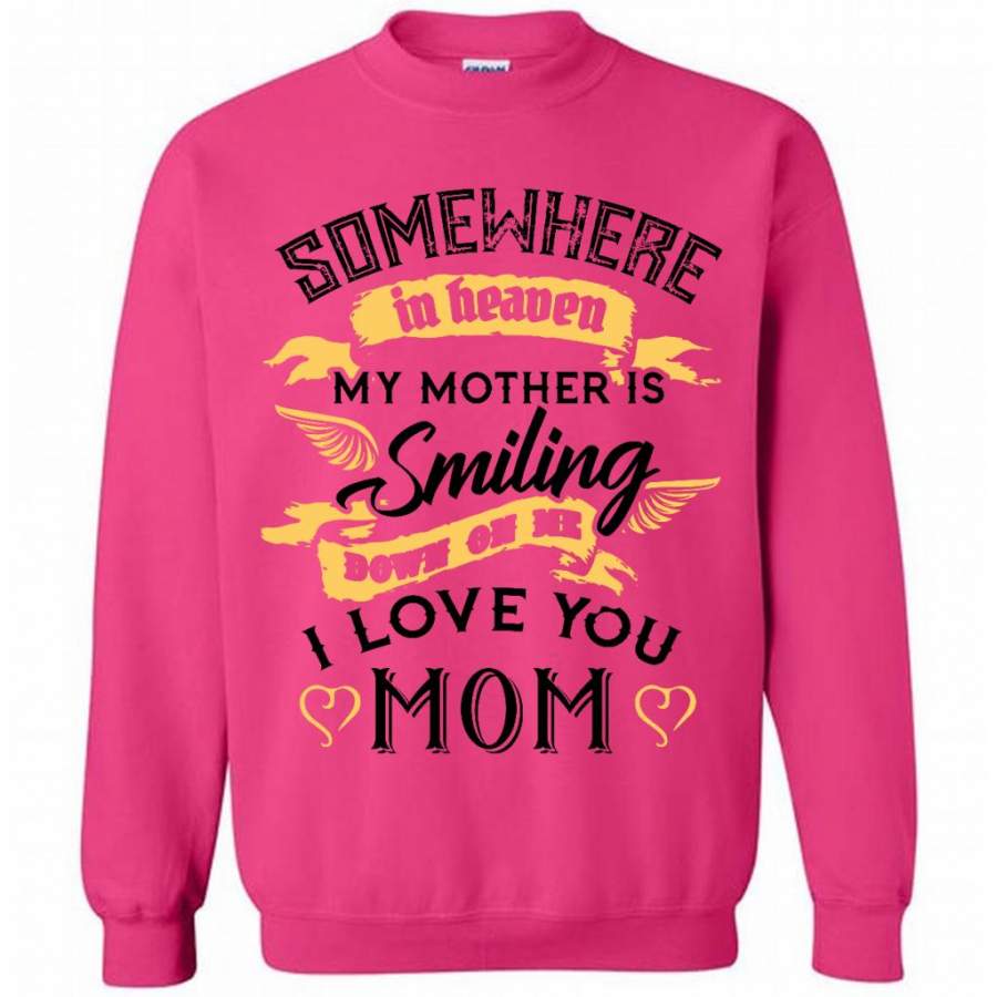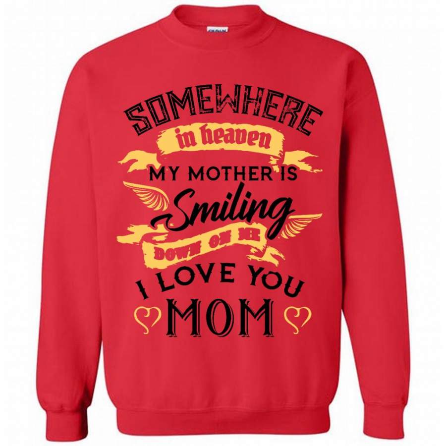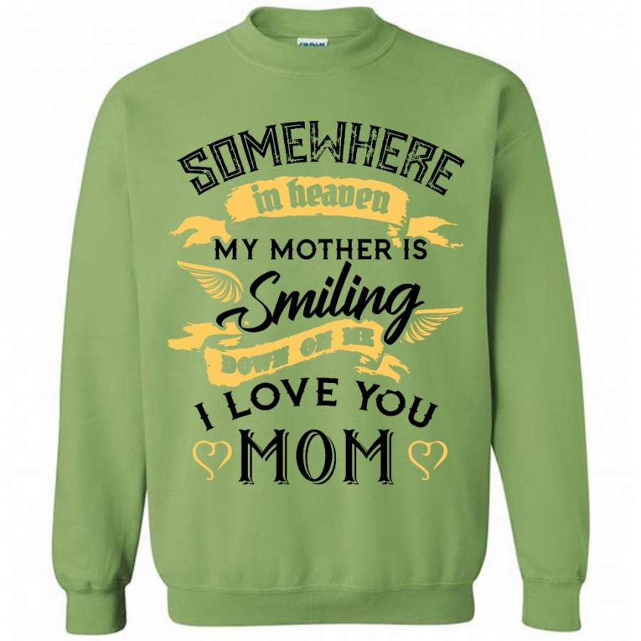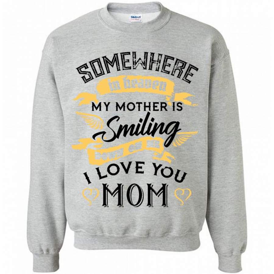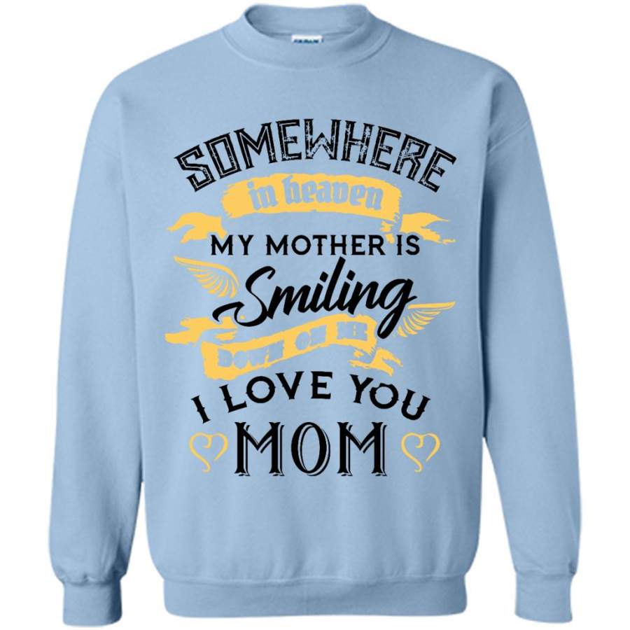 Somewhere In Heaven My Mother Is SMiling Down On Me I Love You Mom (w) – Gildan Crewneck Sweatshirt