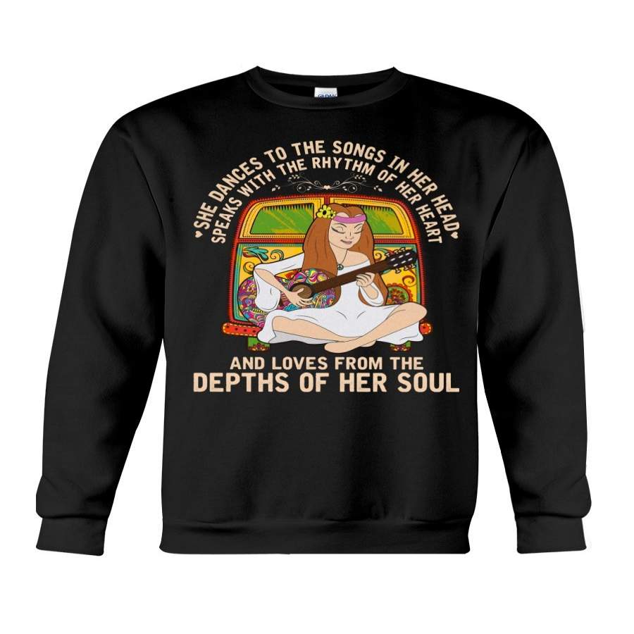 So whether you're looking to show off your own name or create a personalized gift for someone special, LateAndLow Store has got you covered. Start designing your own custom Songs In Her Head Rhythm In Her Heart And Loves From Her Soul Sweatshirt print-on-demand product today, and let us bring your vision to life!