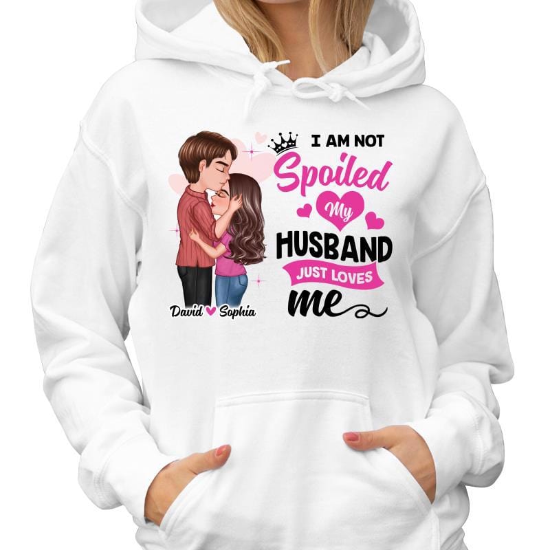 So whether you're looking to show off your own name or create a personalized gift for someone special, LateAndLow Store has got you covered. Start designing your own custom Spoiled By Husband Doll Couple Kissing Personalized Hoodie Sweatshirt print-on-demand product today, and let us bring your vision to life!