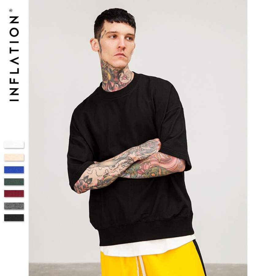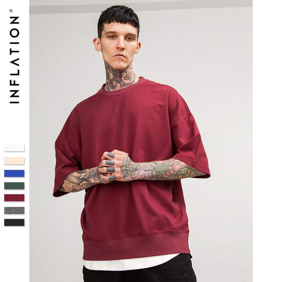 Spring Summer Cotton T-shirt Clothing Solid Casual Drop Shoulder Top Tee Hip hop Highstreet tshirt