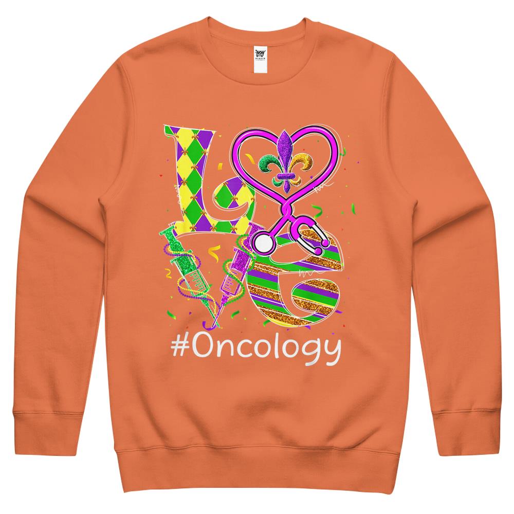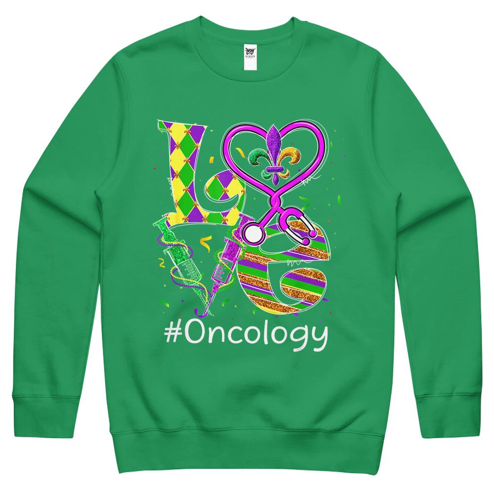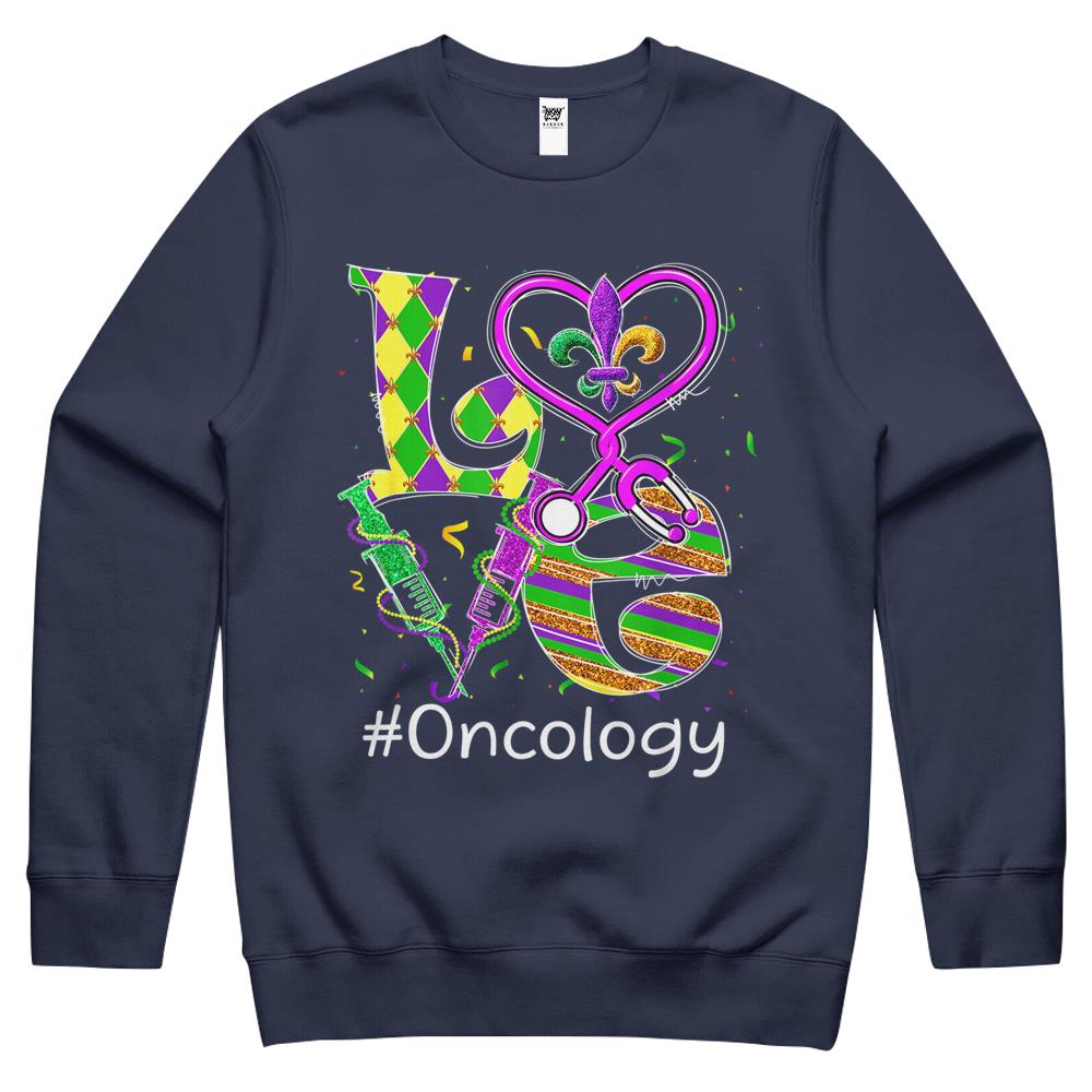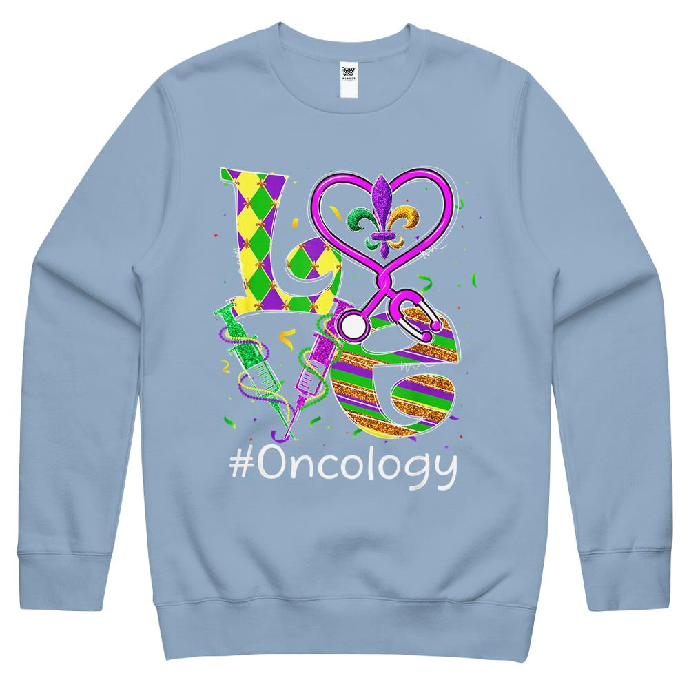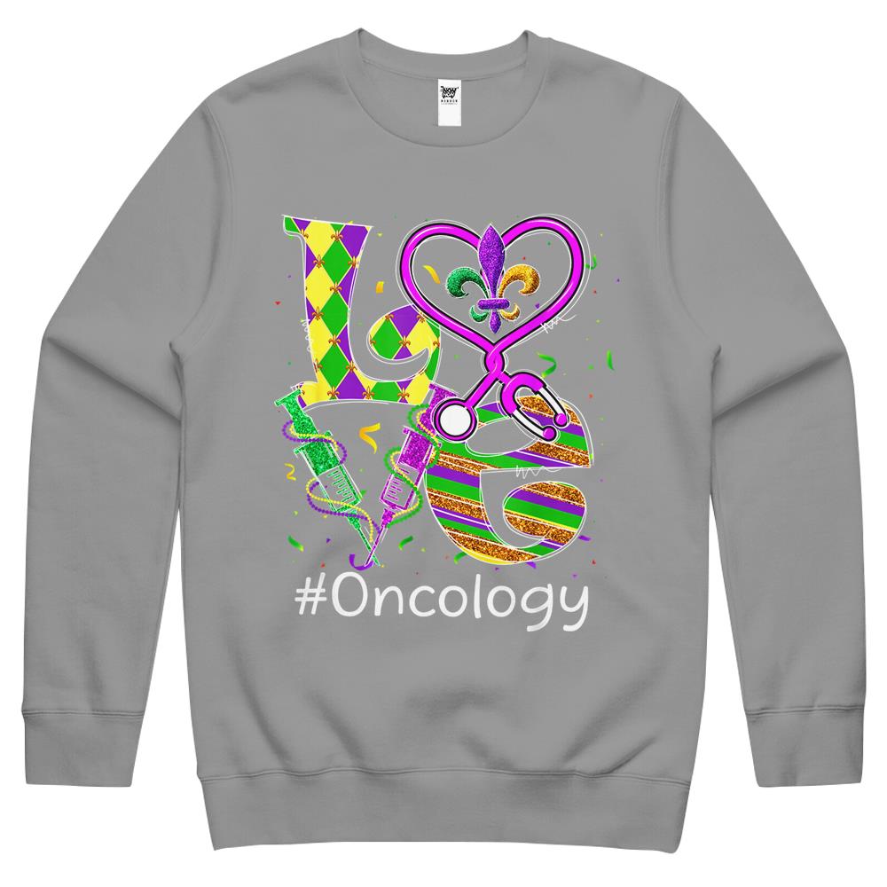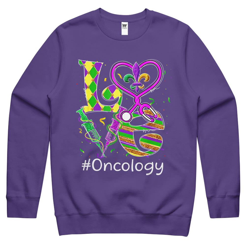 So whether you're looking to show off your own name or create a personalized gift for someone special, LateAndLow Store has got you covered. Start designing your own custom Stethoscope Love Oncology Nurse Mardi Gras Carnival Costume Crewneck Sweatshirt print-on-demand product today, and let us bring your vision to life!