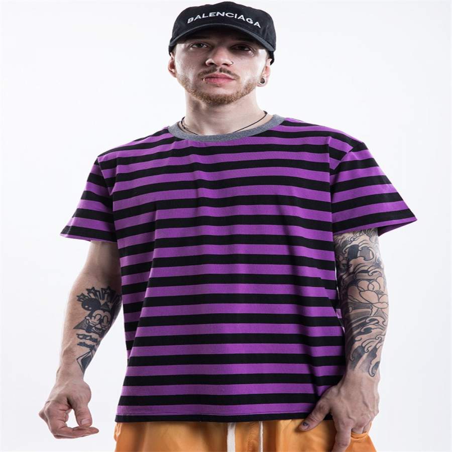 Striped T-shirt Men Summer High Street Men’s T shirts Male Top 4 Colors