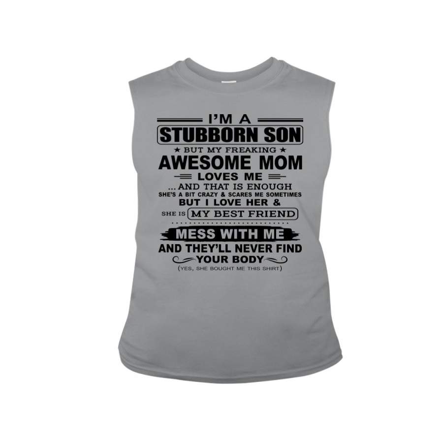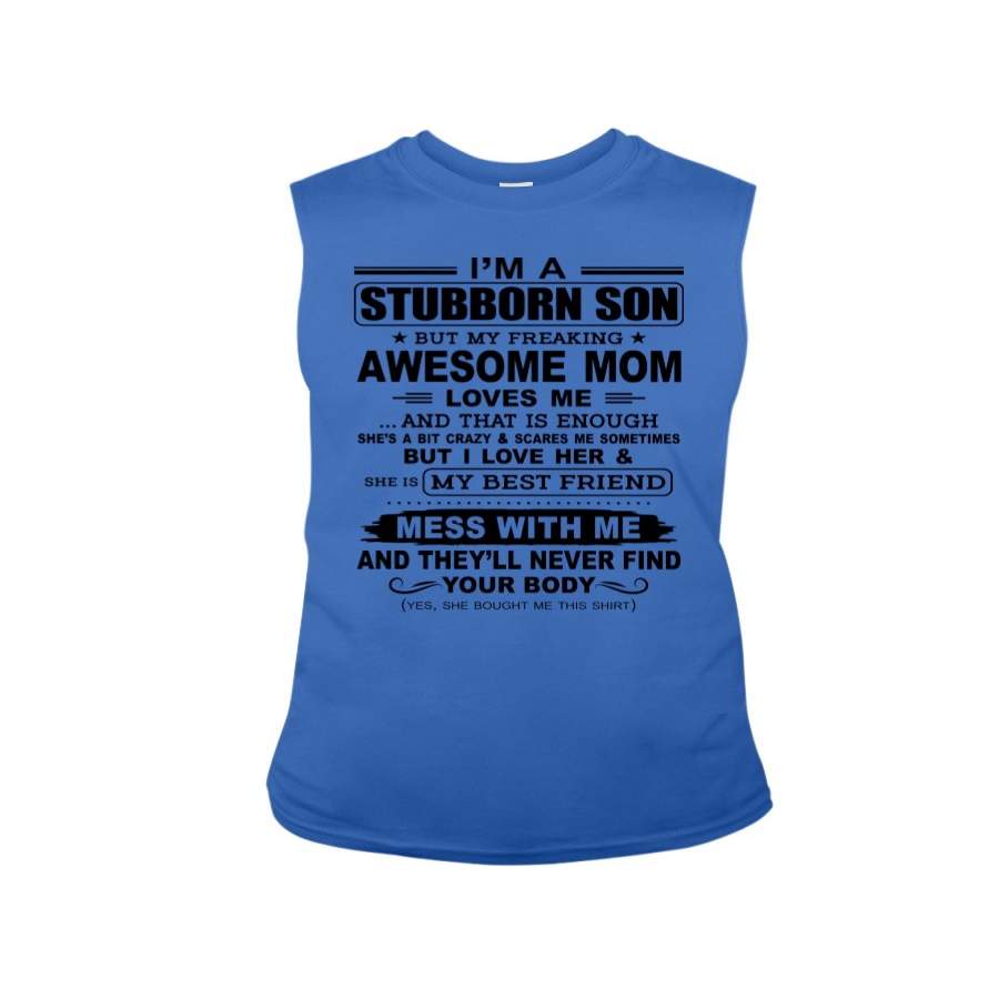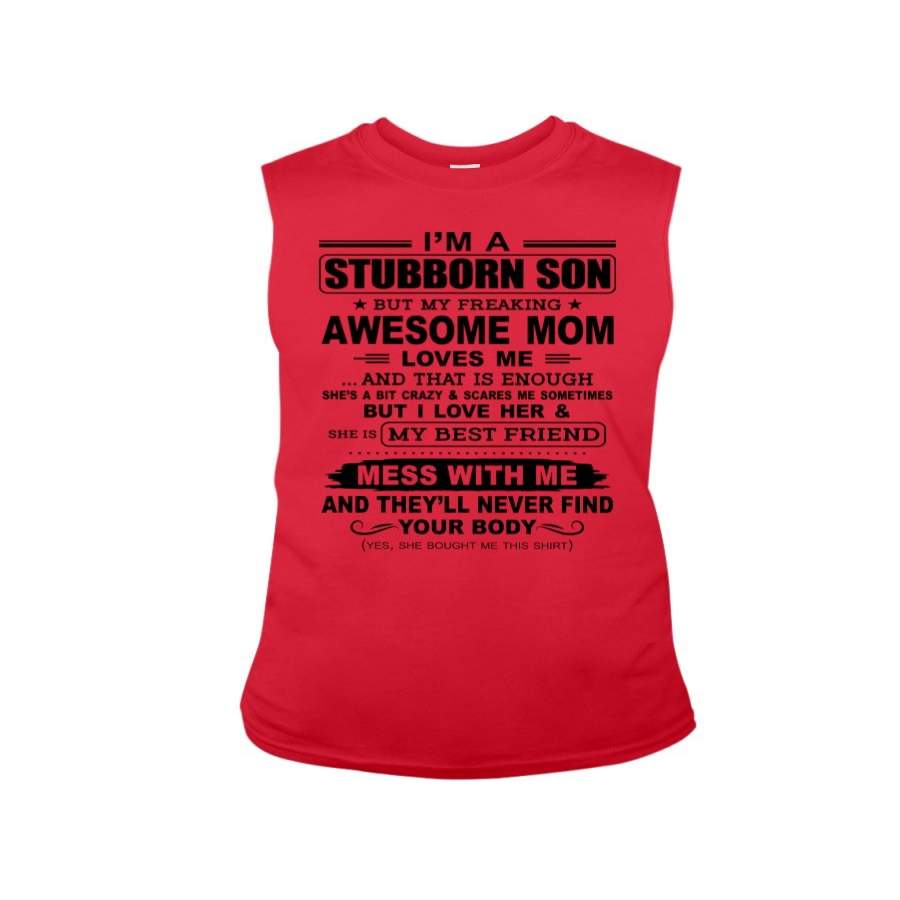 Stubborn Son Loves His Awesome Mom Family Gift T-Shirt Unisex Long Sleeve