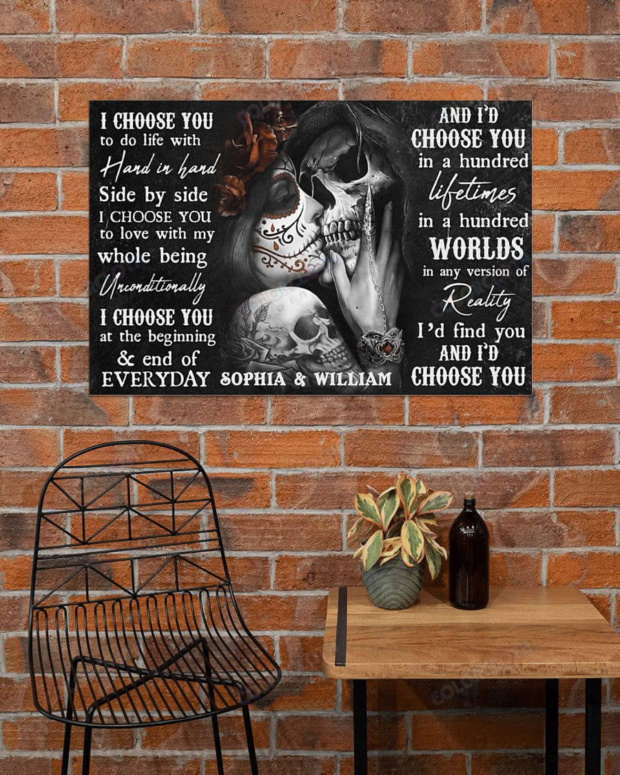 So whether you're looking to show off your own name or create a personalized gift for someone special, LateAndLow Store has got you covered. Start designing your own custom Sugar Skull Couple I Choose You Horizontal Poster Ty410002 print-on-demand product today, and let us bring your vision to life!