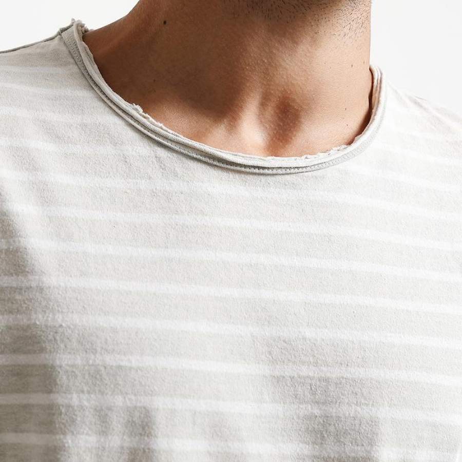 Summer Autumn T Shirt Men Vintage Curl Hem Tops Pure Cotton O-neck Casual T-Shirts