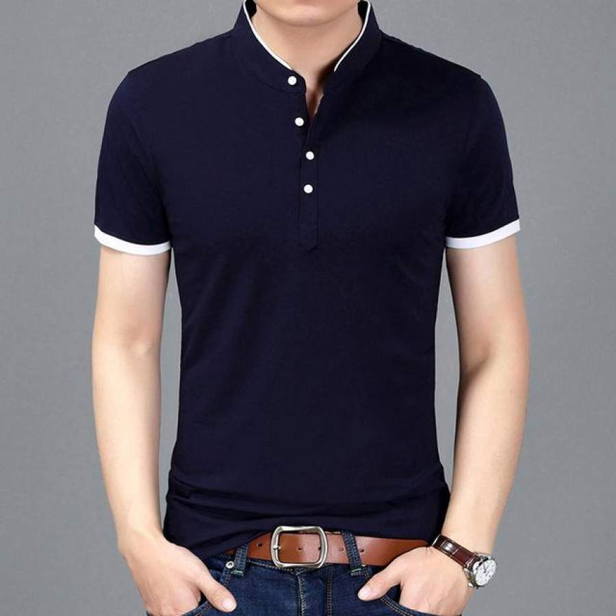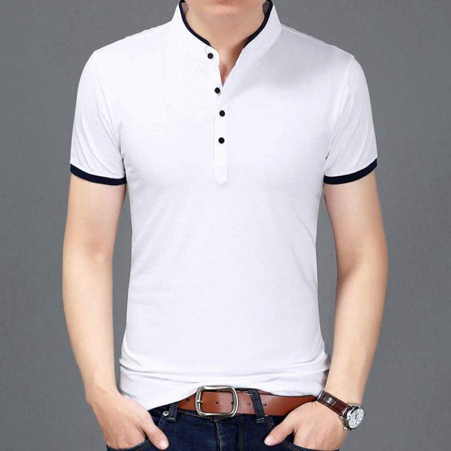 Summer Clothing T shirt Men Solid Color Slim Fit Short Sleeve T Shirt Men Collar Casual