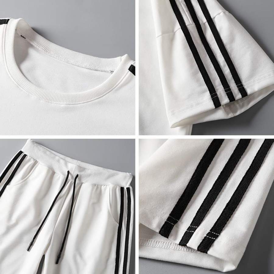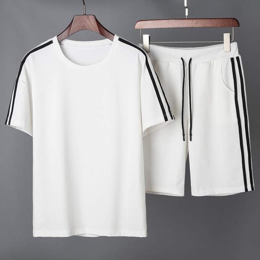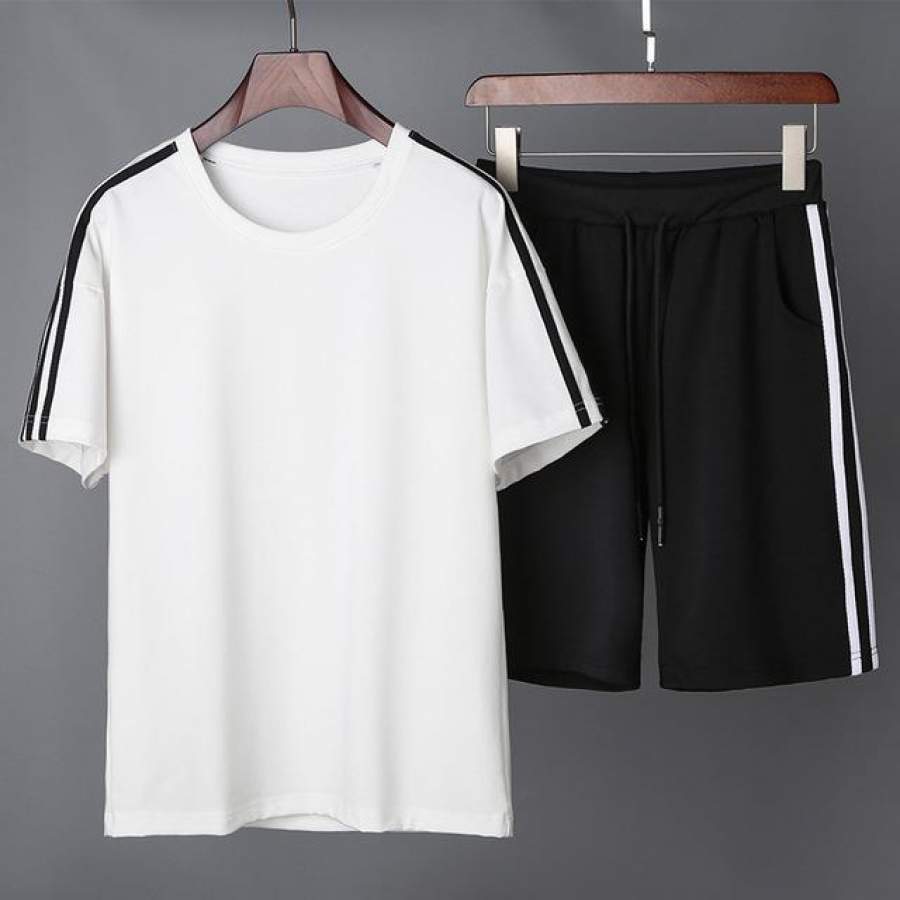 Summer Men T-shirt Tracksuit Short Sleeve Shorts Two Piece Sportswear Sets Men Fitness Sweat Cotton
