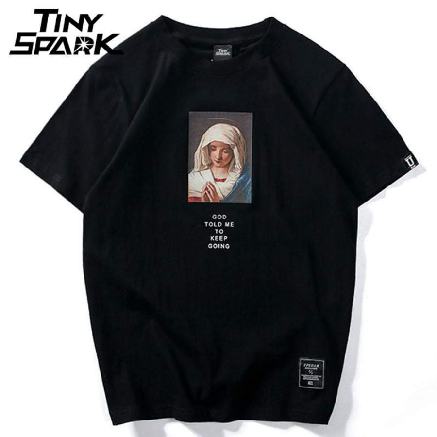 Summer Men’s T Shirts Virgin Mary Printed Casual Short Sleeve T-Shirt Cotton Hip Hop Tops Tee Fashion Street wear T shirt