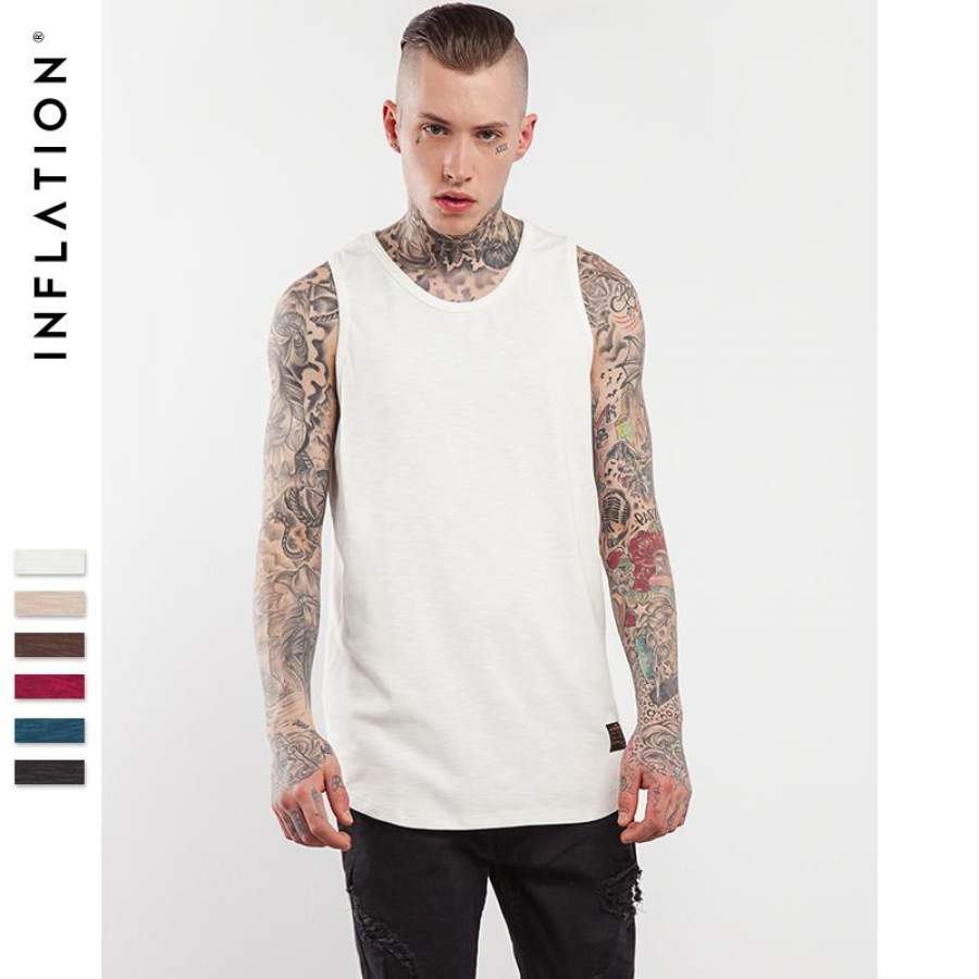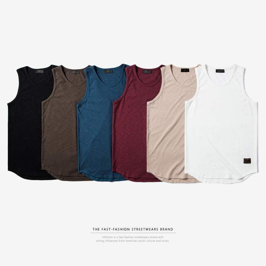 Summer New Style Cotton Hip Hop Extra Long Curved Hem Tank T Shirts