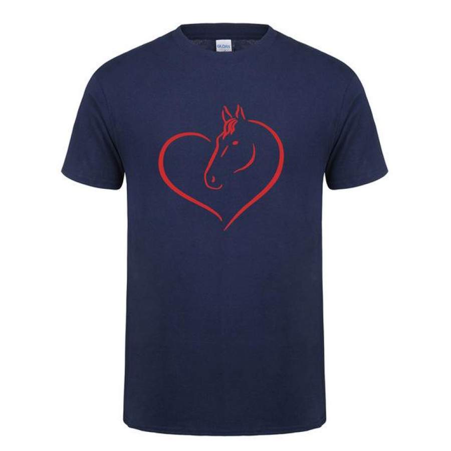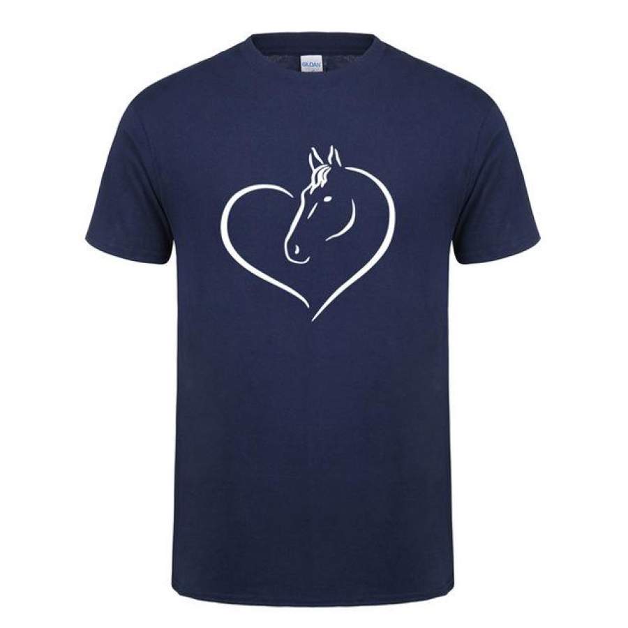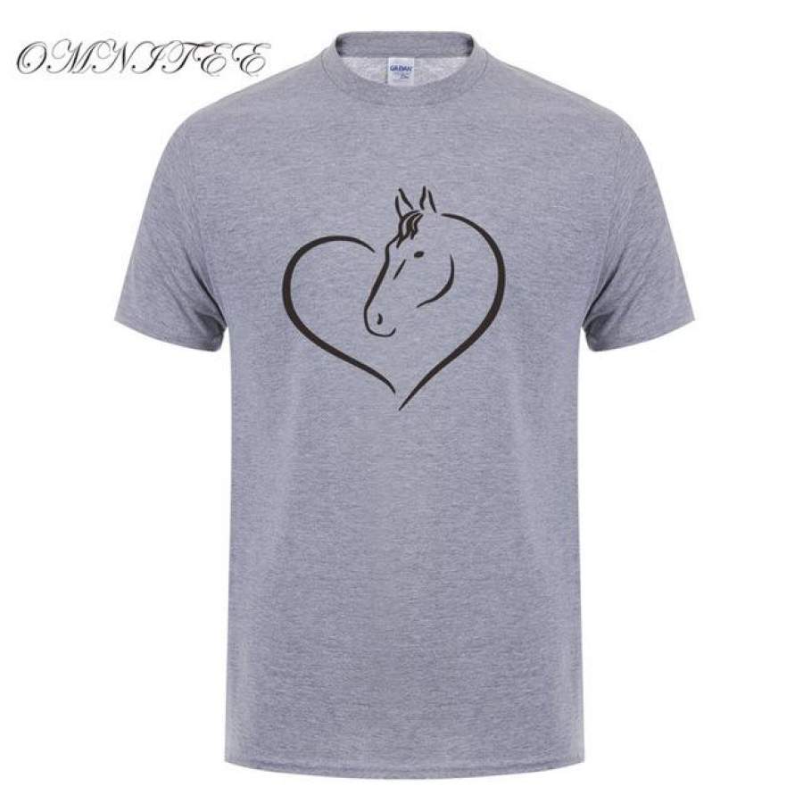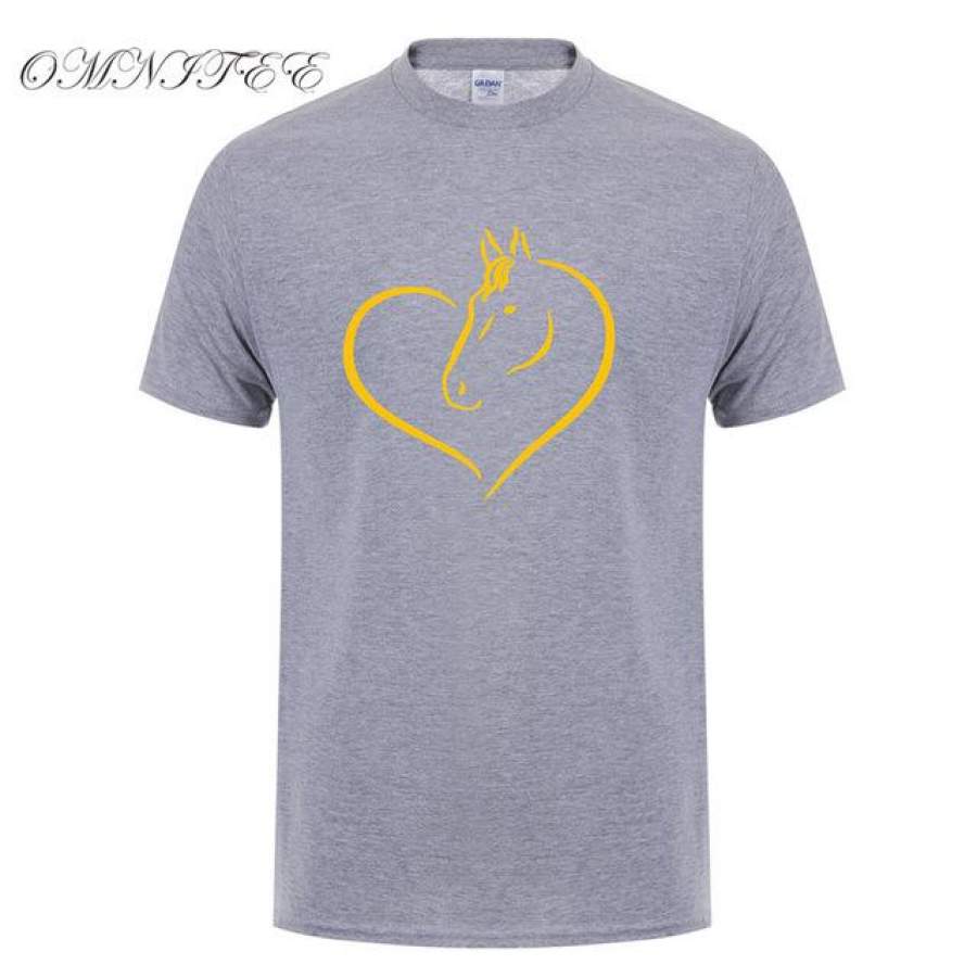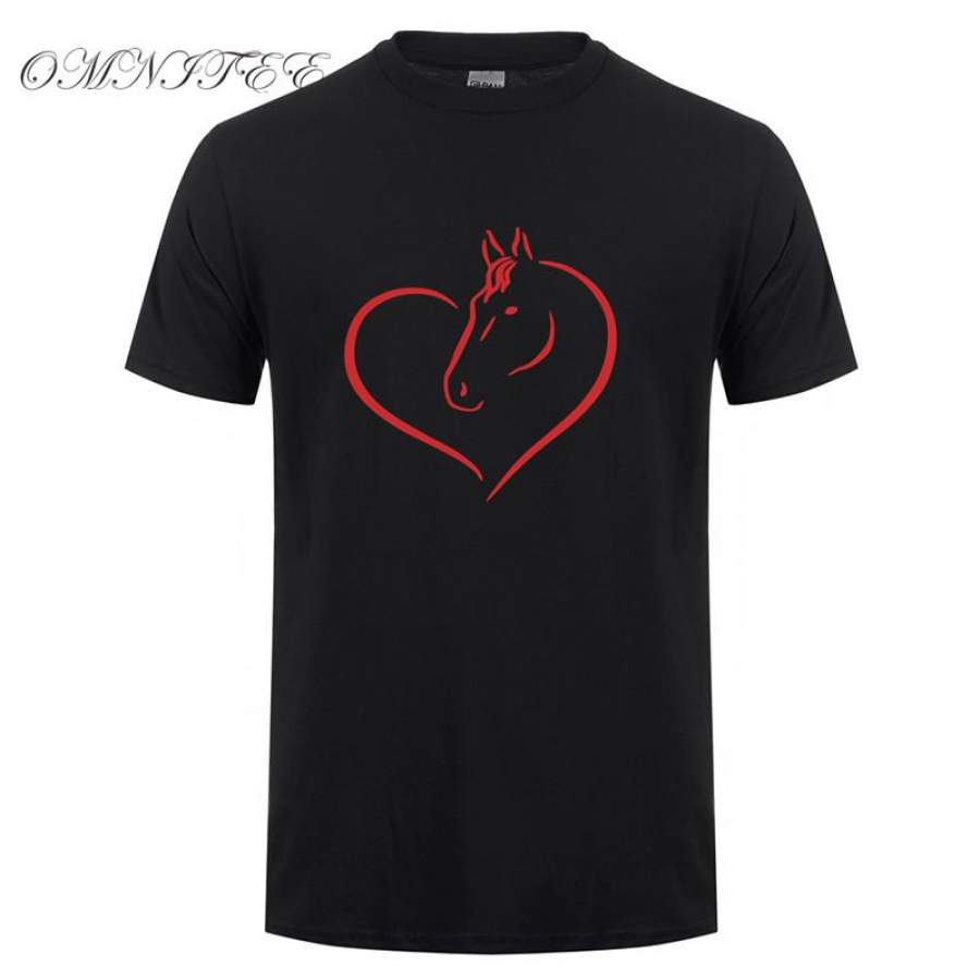 Summer Printed Men Short Sleeve O-Neck Cotton Love Riding Horse Men T-shirt