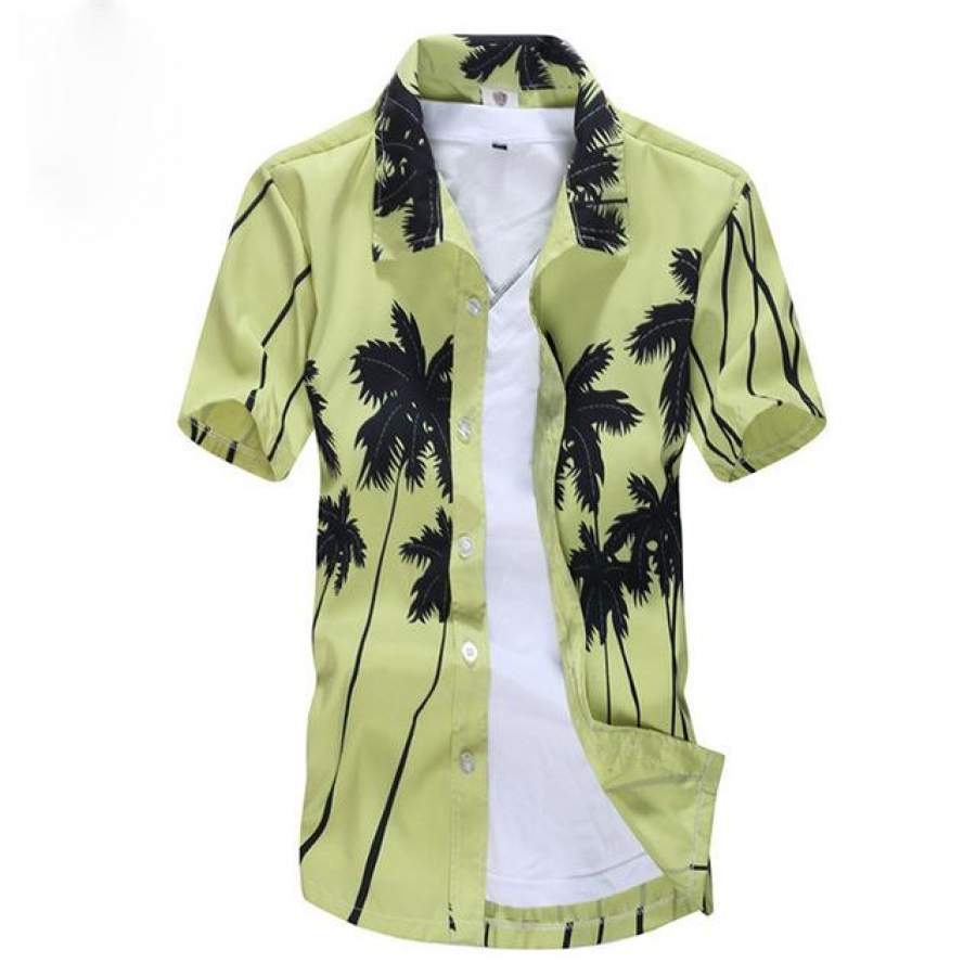 Summer Shirt Men Casual Beach Slim Fashion Floral Shirts Coconut Printing Camisa