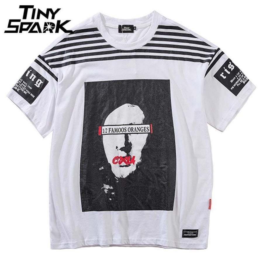Summer Short Sleeve T-Shirt Print Men Hip Hop Street wear Striped Creative Casual Tops Tees Cotton