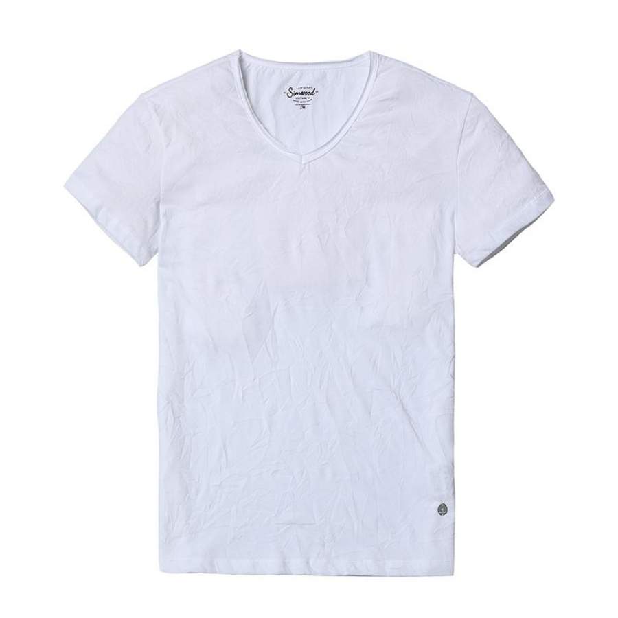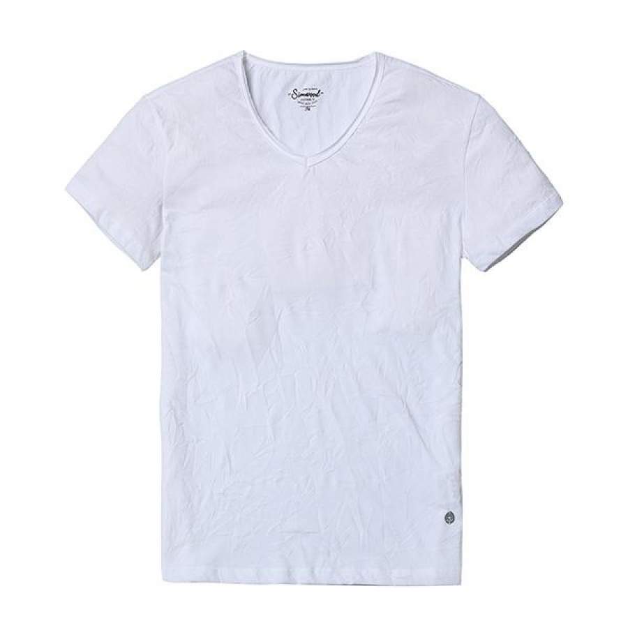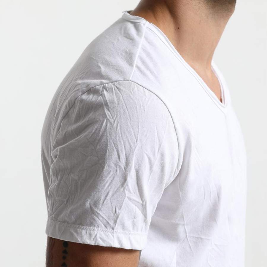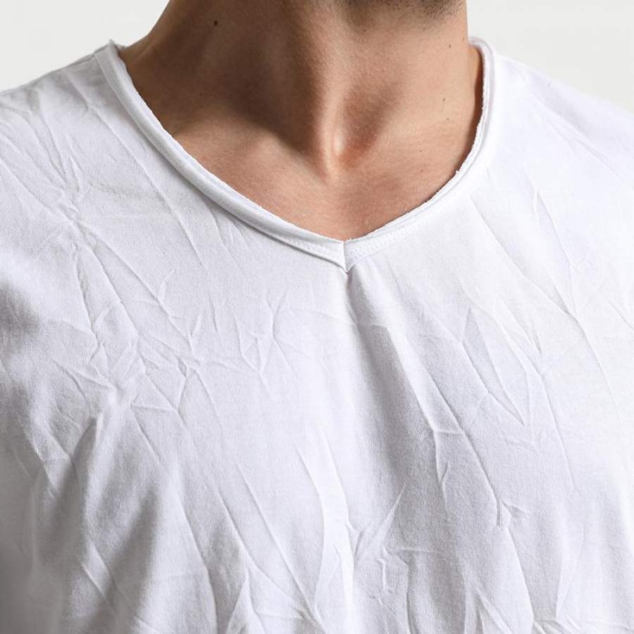 Summer T Shirts Men Slim Fit V-Neck Slim Fit Curl Hem wrinkle Solid Color Clothing