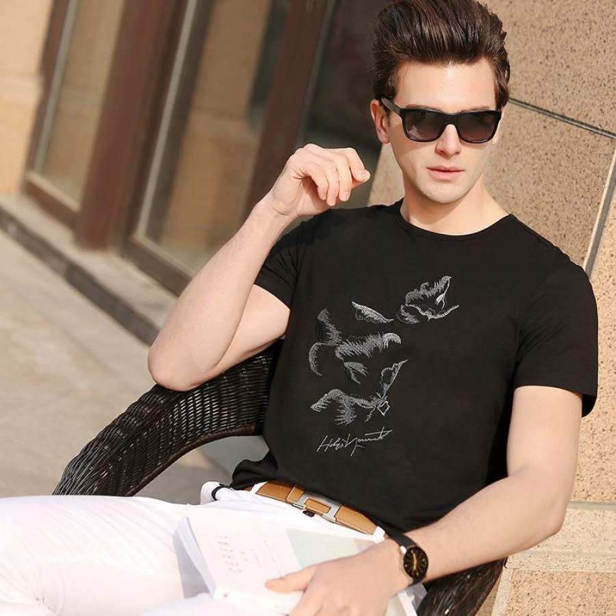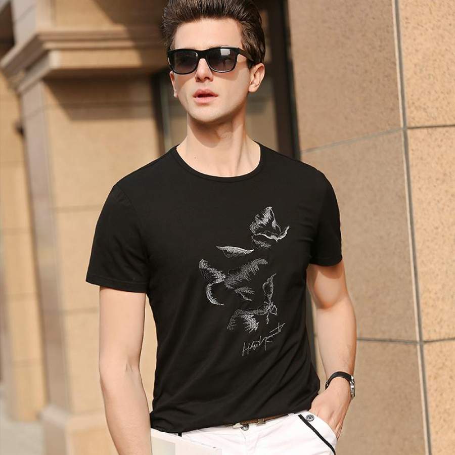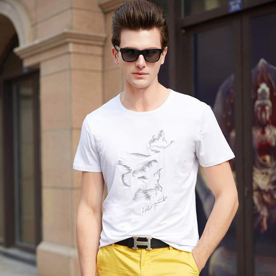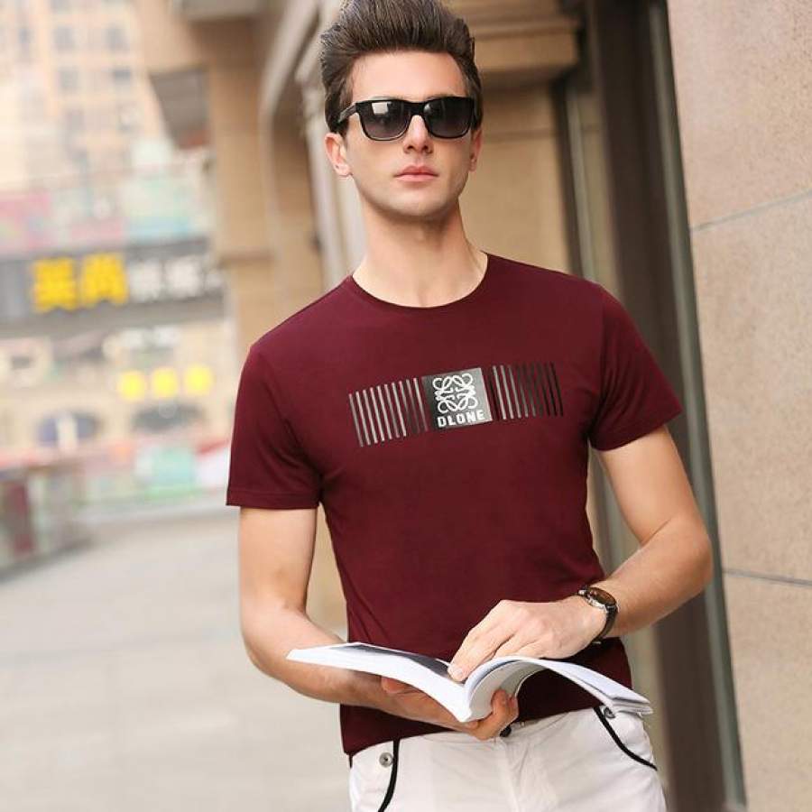 Summer Top Trends Print Slim Fit Short Sleeve T Shirt Fitness O-Neck Casual Men Clothes