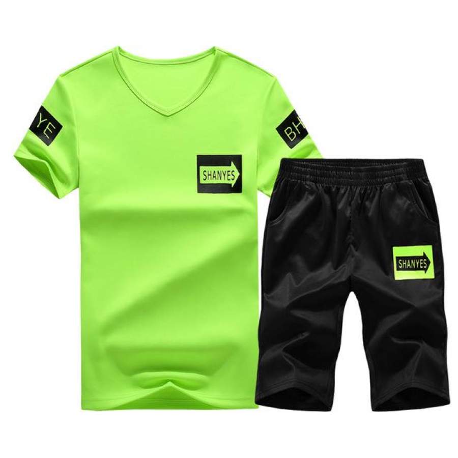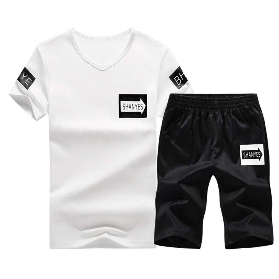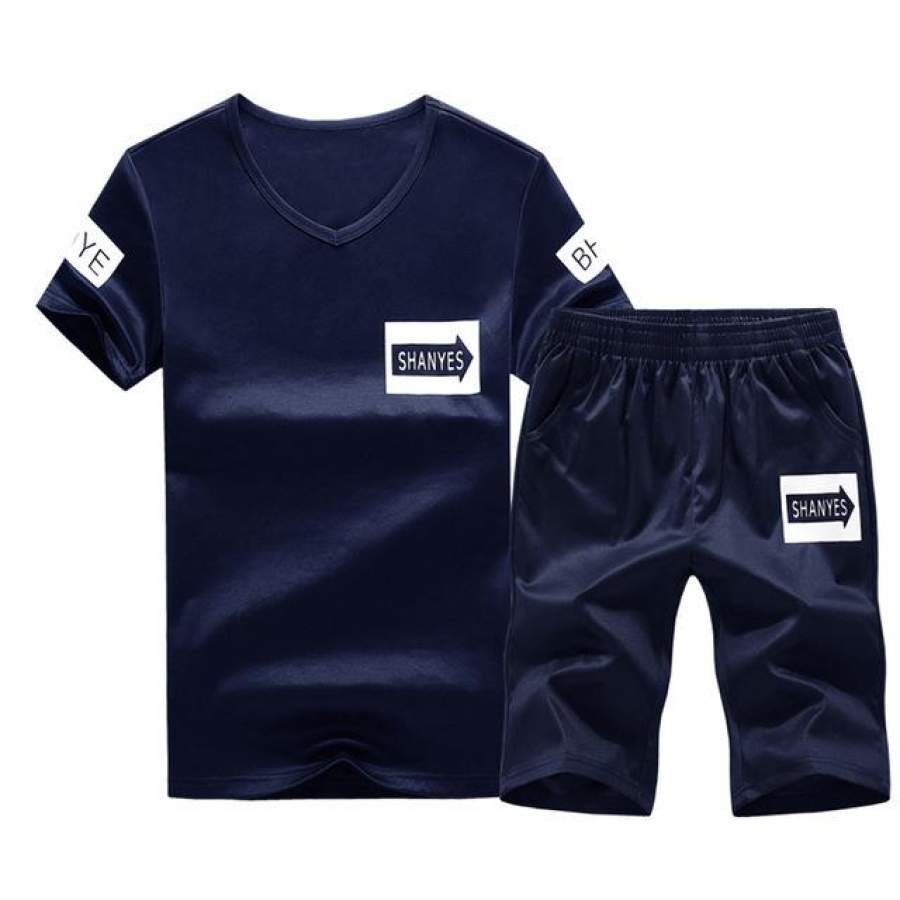 Summer V-Neck slim Set Men Sport wear Suits Casual Beach Suits Short T shirt Shorts Tracksuit Sets