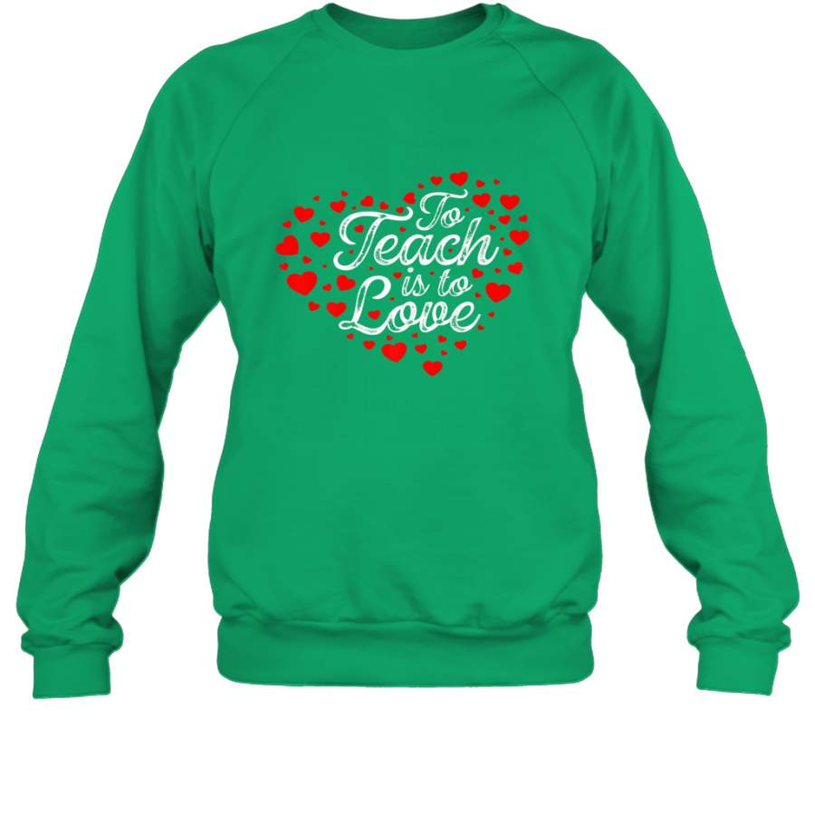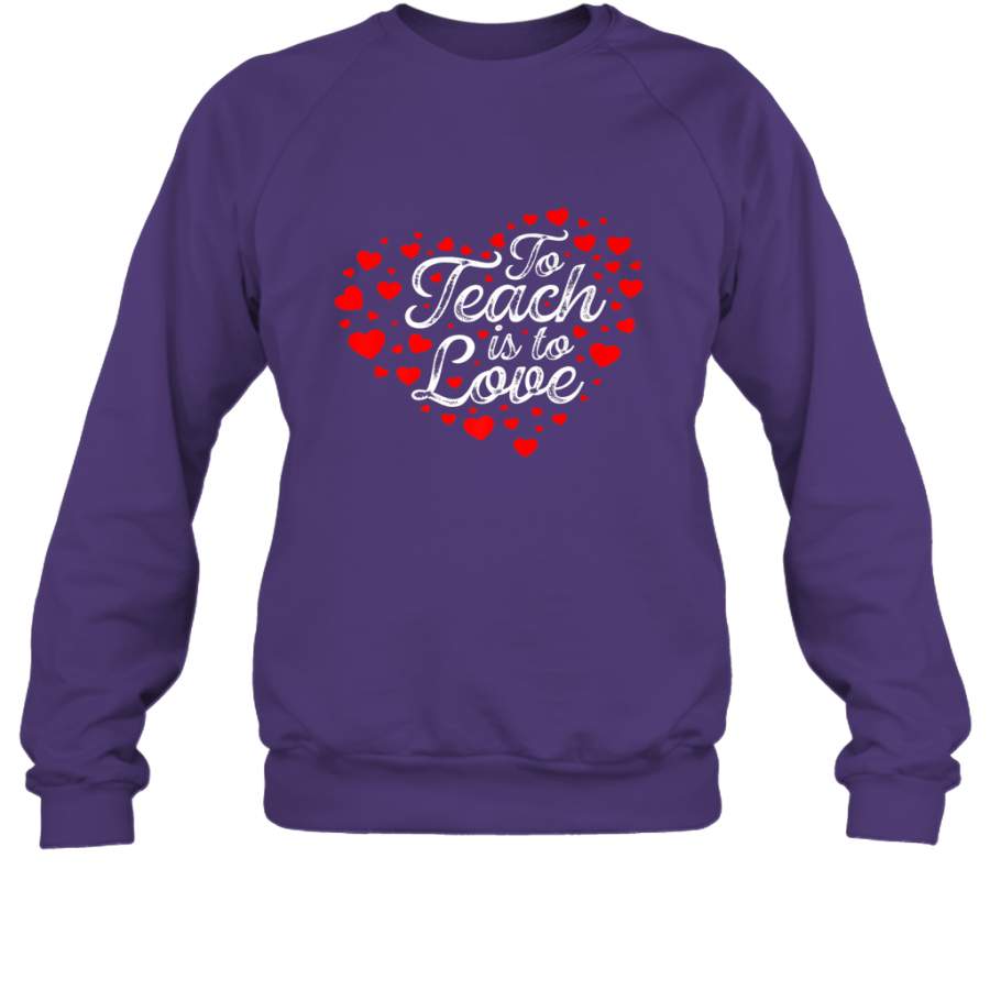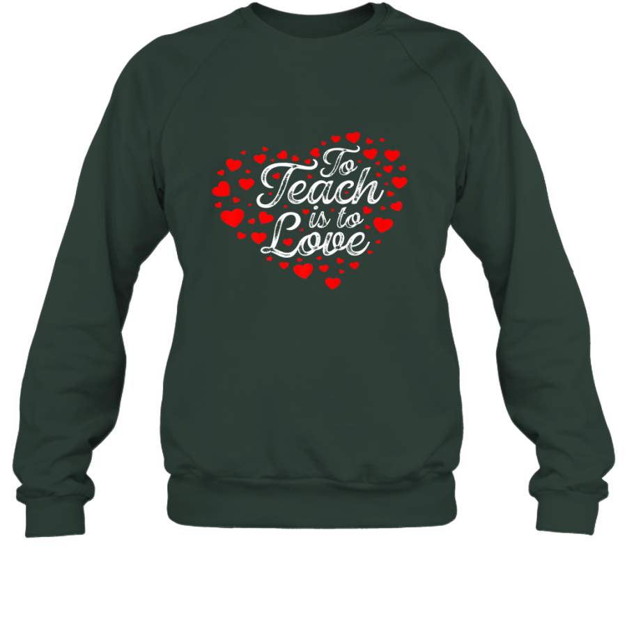 Teach Is To Love Valentine’s Day School classroom Art Heart Crewneck Sweatshirt