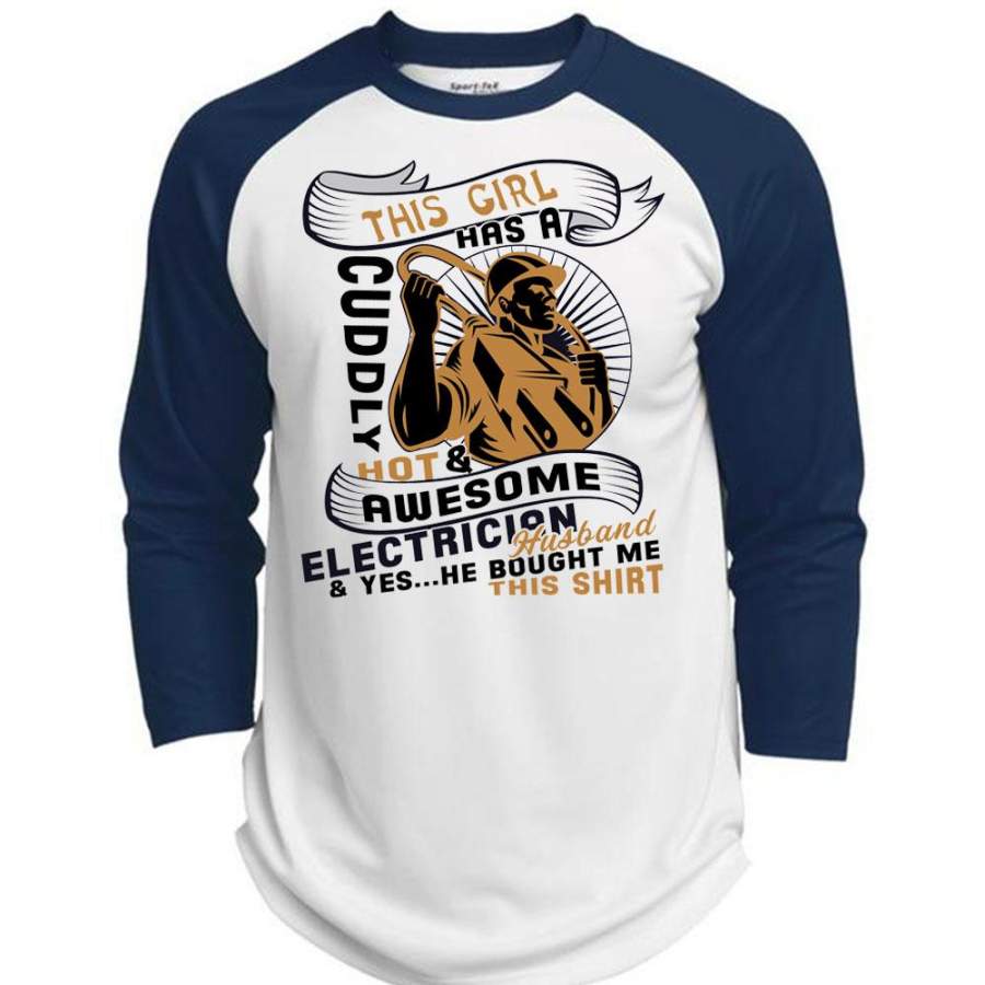 This Girl Has A Cuddly Hot Electrician Husband T Shirt, I Love Electrician T Shirt, Awesome T-Shirts (Polyester Game Baseball Jersey)