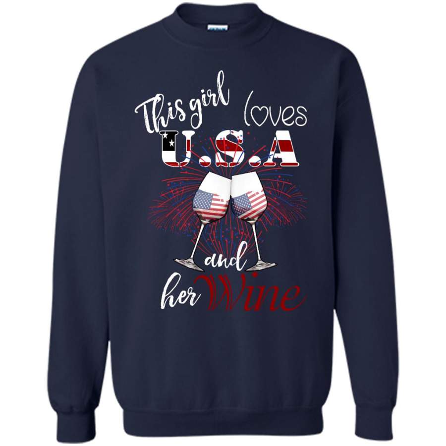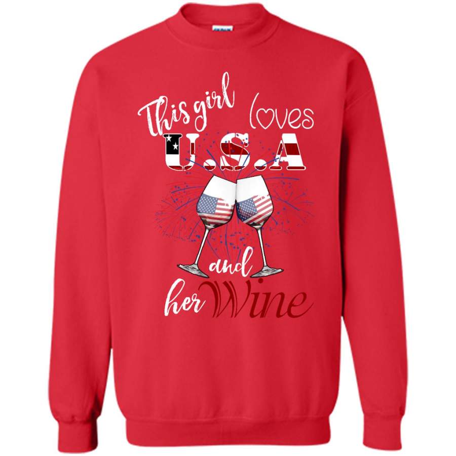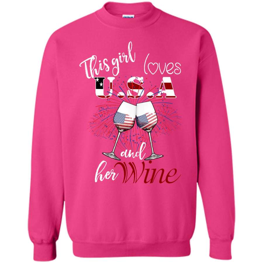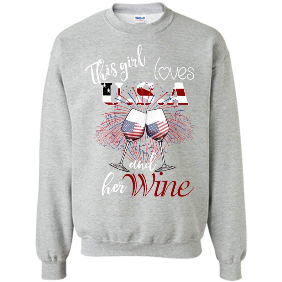 This Girl Loves USA And Her Wine – Gildan Crewneck Sweatshirt