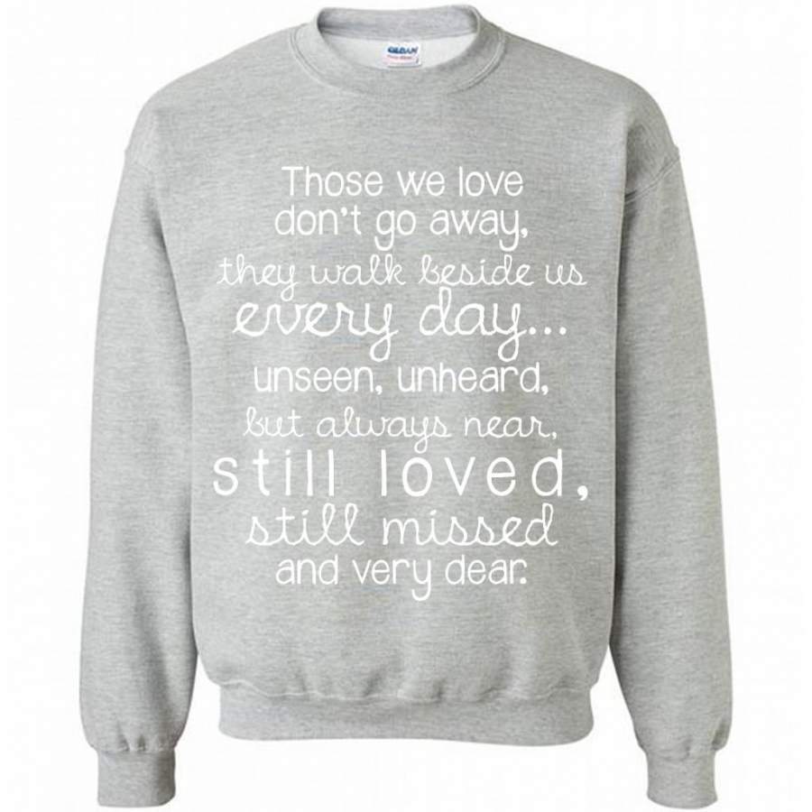 Our print-on-demand products are made with the highest quality materials, ensuring that your personalized Those We Love Don’t Go Away They Walk Beside Us Every Day Unseen Unheard But Always Near Still Loved Still Missed And Very Dear – Gildan Crewneck Sweatshirt design looks great and feels comfortable. You can wear your new custom product with pride or give it as a unique and memorable gift that will be cherished for years to come.