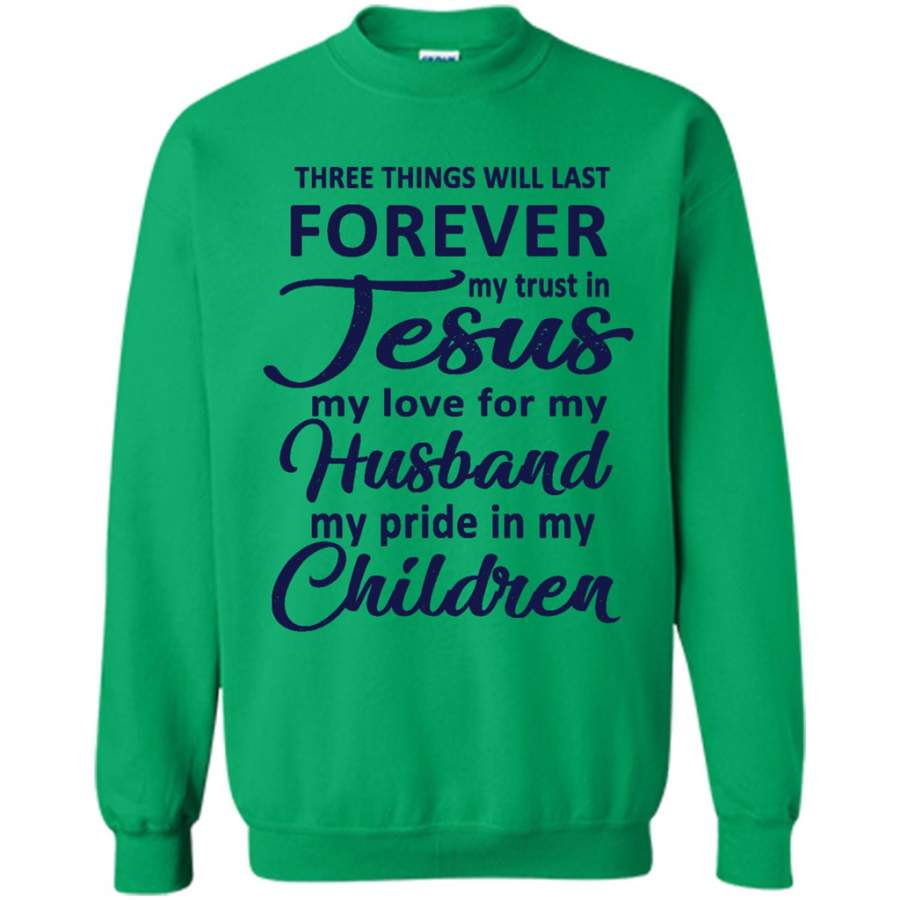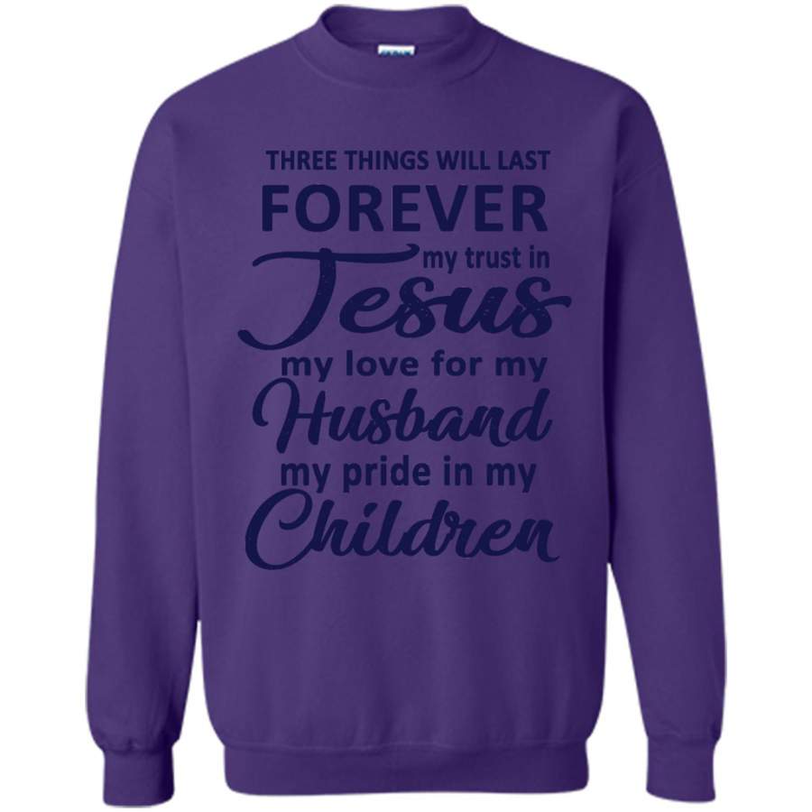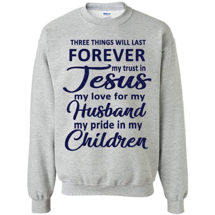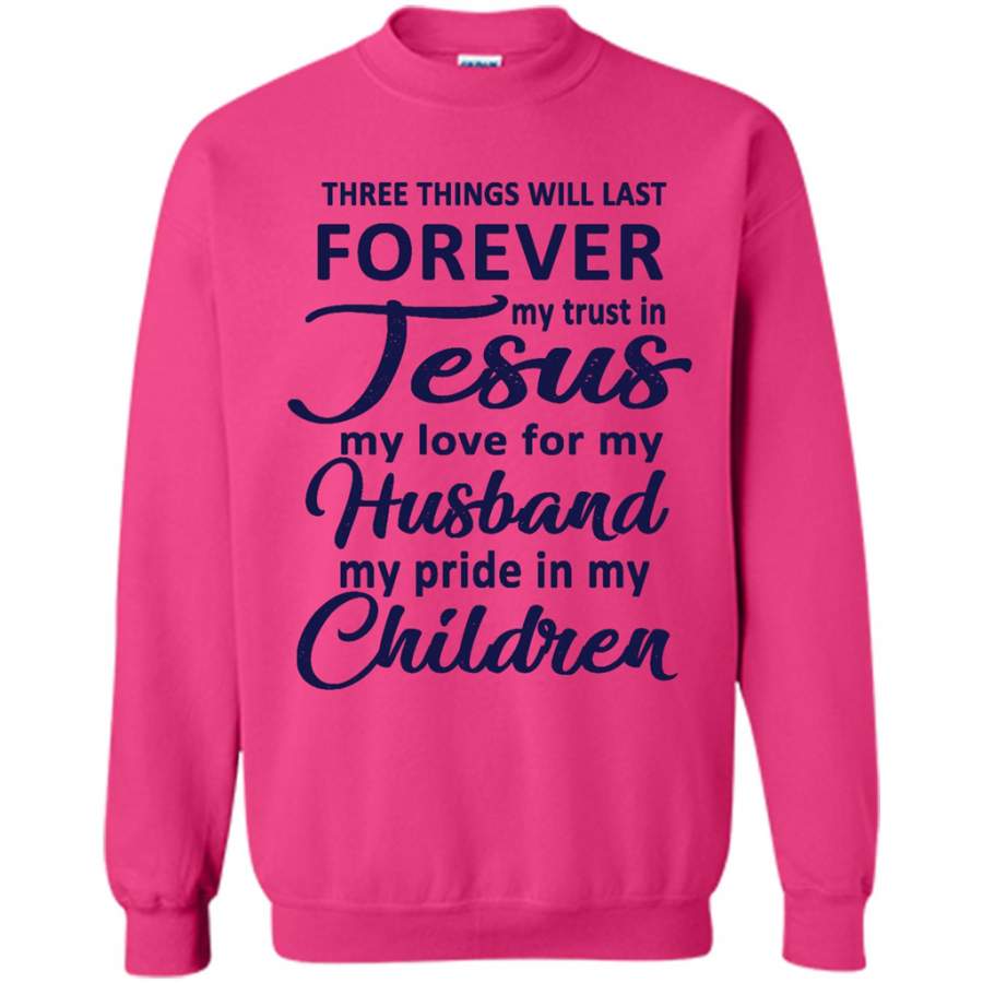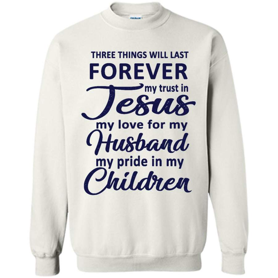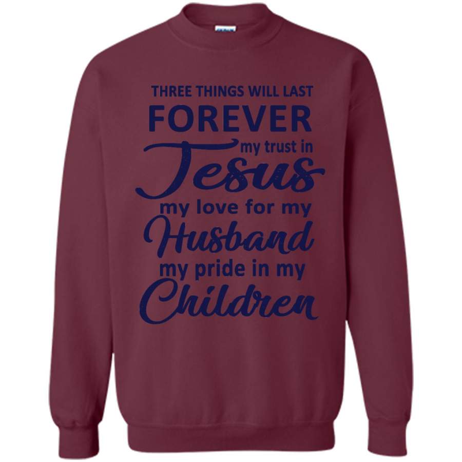 Three Things Will Last Forever My Trust In Jesus My Love For My Husband My Pride In My Children – Gildan Crewneck Sweatshirt