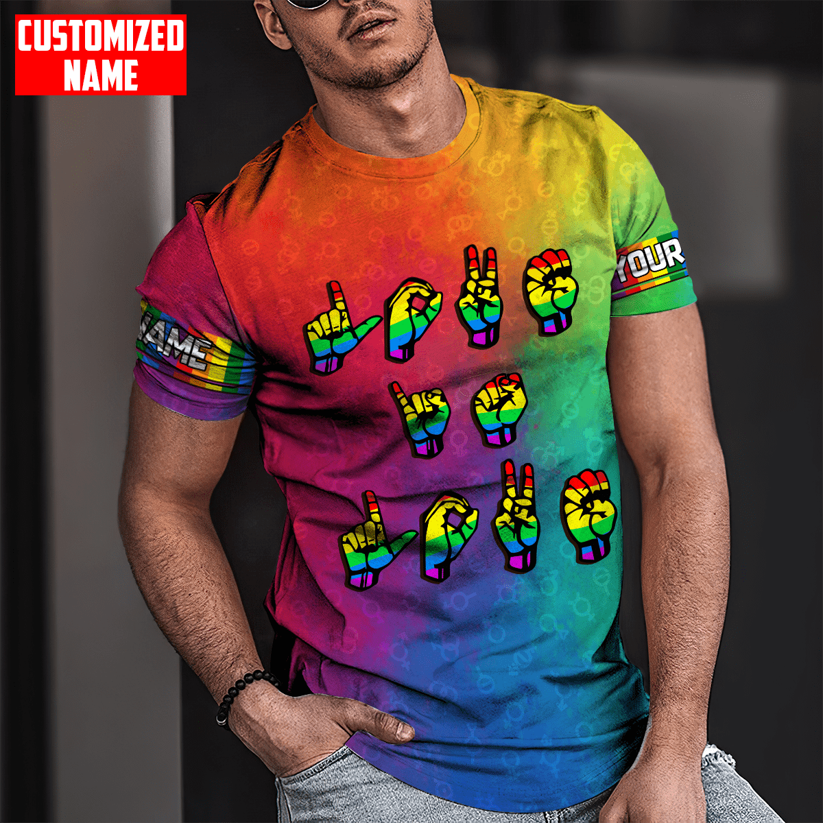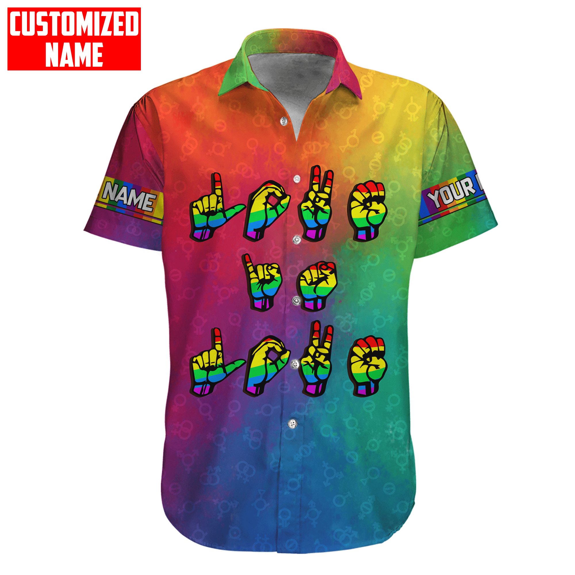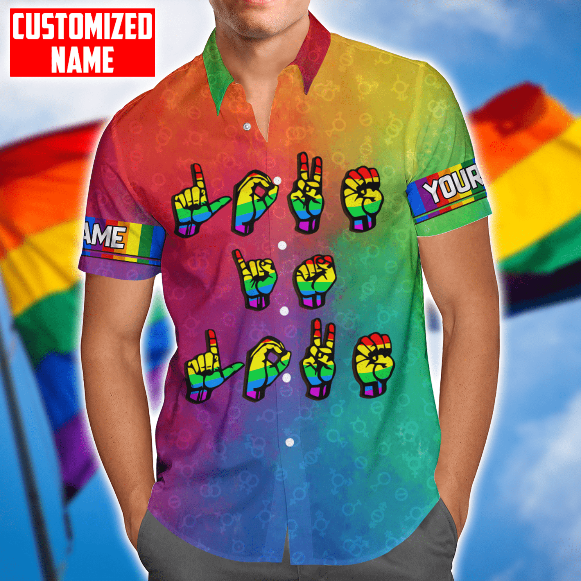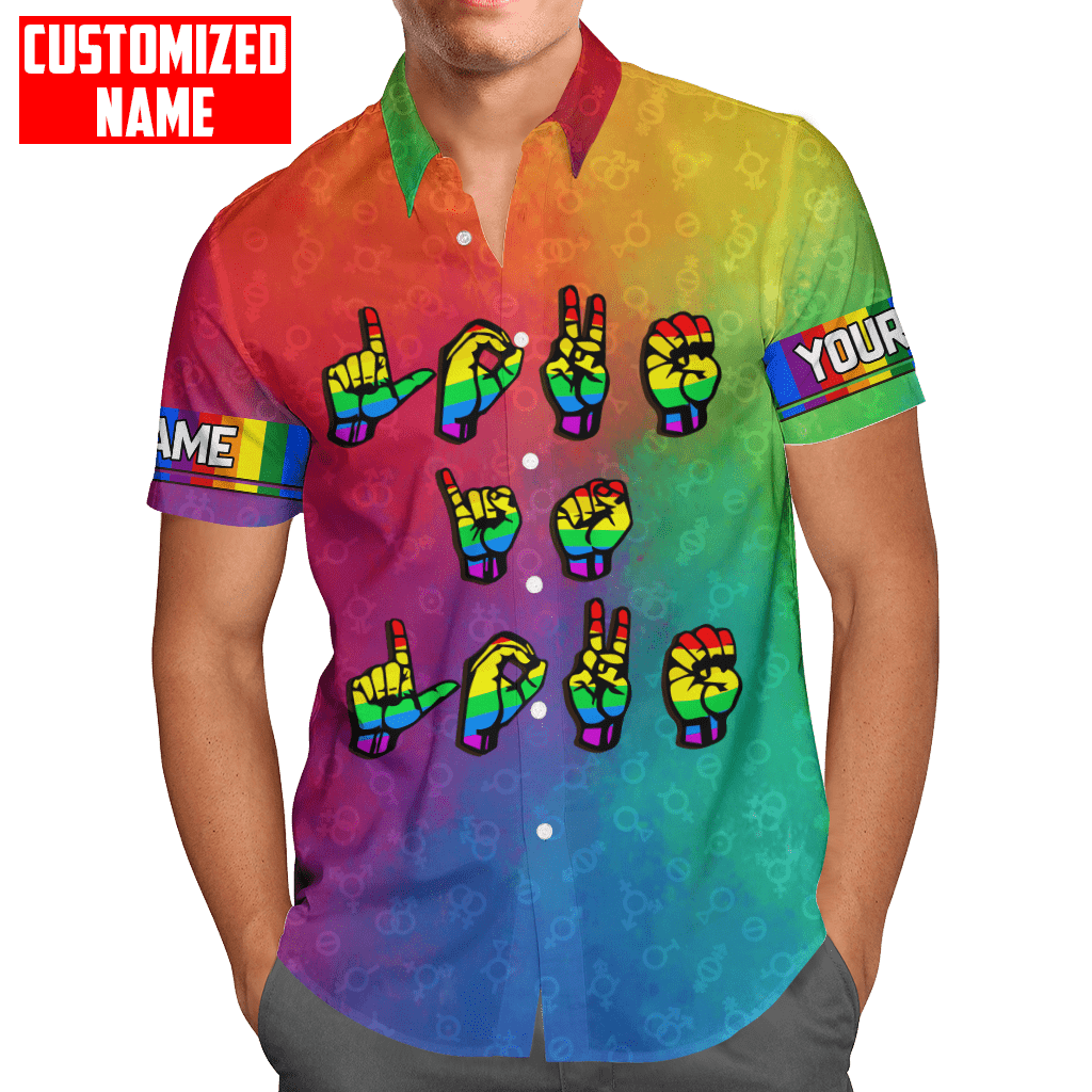 So whether you're looking to show off your own name or create a personalized gift for someone special, LateAndLow Store has got you covered. Start designing your own custom Tmarc Tee Personalized Lgbt Love Is Love Hand Sign Language All Over Printed Unisex Shirts print-on-demand product today, and let us bring your vision to life!