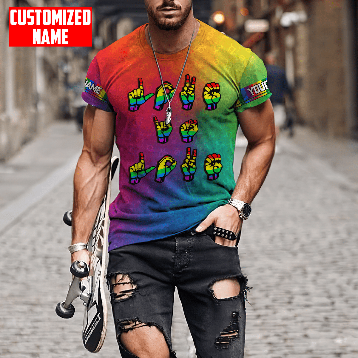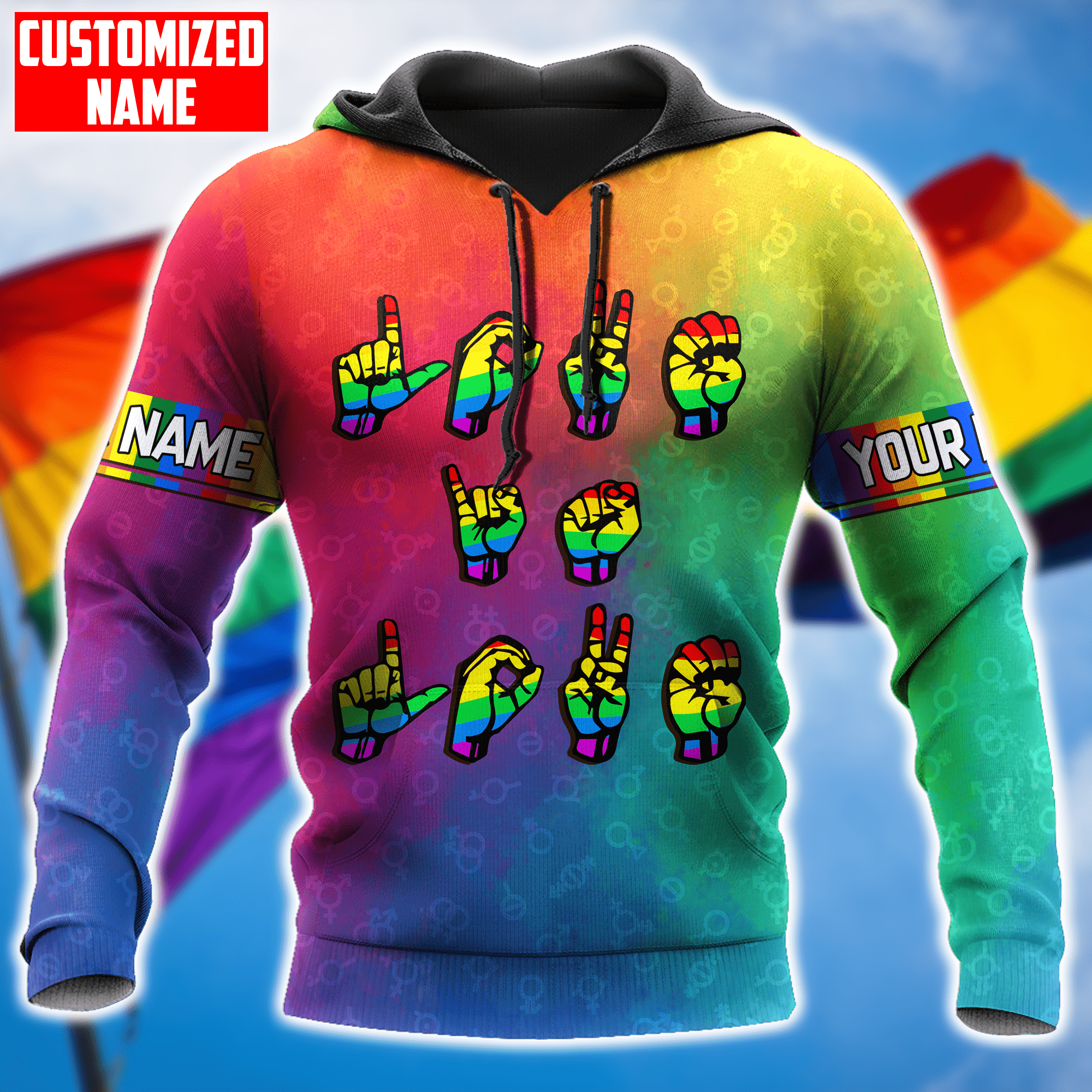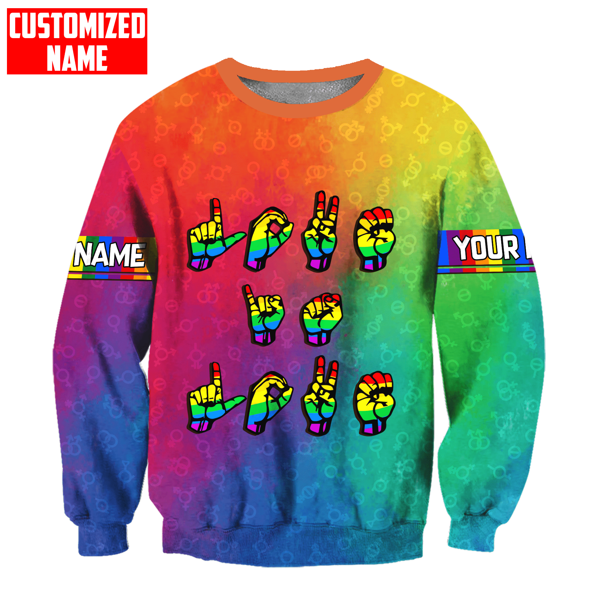 So whether you're looking to show off your own name or create a personalized gift for someone special, LateAndLow Store has got you covered. Start designing your own custom Tmarc Tee Personalized Lgbt Love Is Love Hand Sign Language All Over Printed Unisex Shirts print-on-demand product today, and let us bring your vision to life!