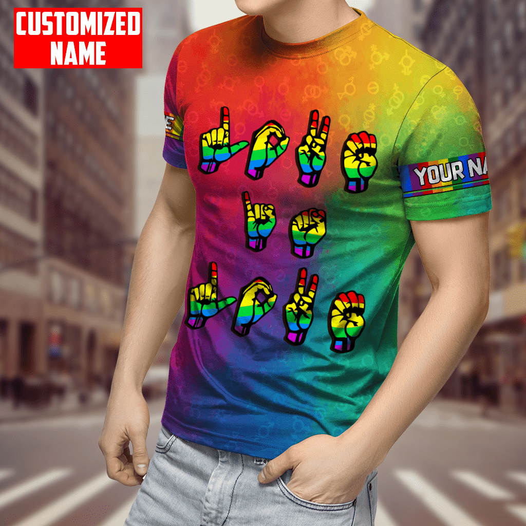 Tmarc Tee Personalized Lgbt Love Is Love Hand Sign Language All Over Printed Unisex Shirts