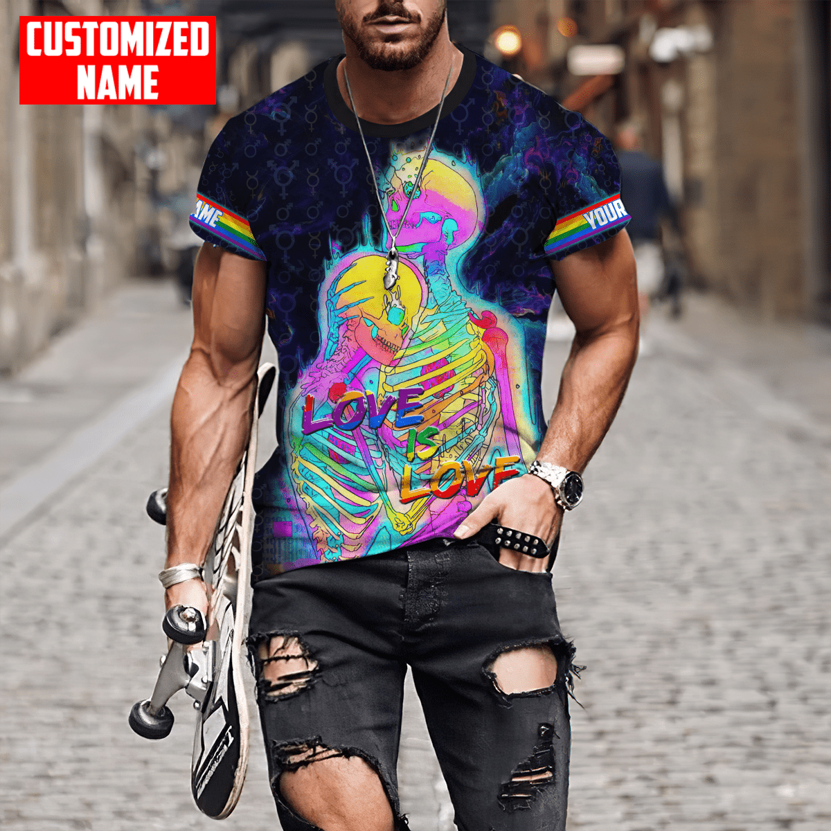 So whether you're looking to show off your own name or create a personalized gift for someone special, LateAndLow Store has got you covered. Start designing your own custom Tmarc Tee Personalized Lgbt Love Is Love Skull Lovers All Over Printed Unisex Shirts print-on-demand product today, and let us bring your vision to life!